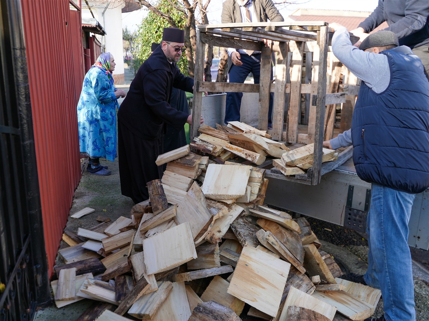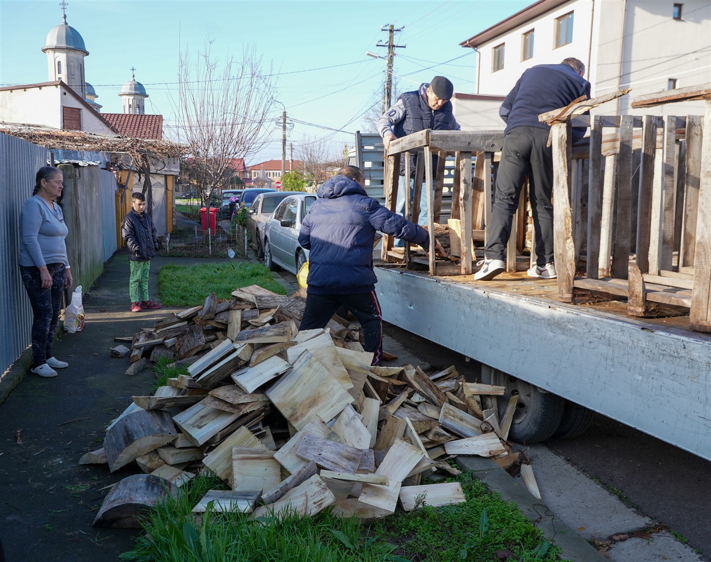 Fapta cea bună a continuat şi astăzi, când 25 de familii au primit din partea parohiei lemne pentru iarnă şi alimente necesare pentru masa de sfintele sărbători.