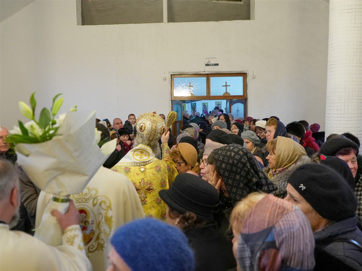 La slujbă au fost prezenţi credincioşi din municipiu, iar răspunsurile liturgice au fost oferite de corul acestui locaş de cult.