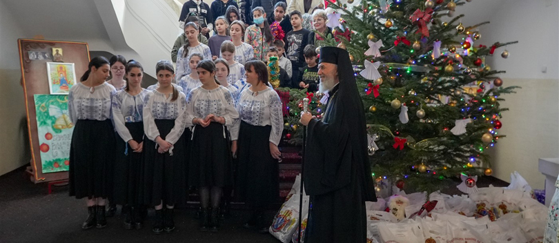 După Sfânta Liturghie de la Catedrala arhiepiscopală, Părintele Arhiepiscop Casian a mers la Aşezământul Social-Filantropic „Sfântul Vasile cel Mare“ din Galaţi pentru a-i binecuvânta şi a le oferi daruri copiilor şi tinerii aflaţi în grija acestei instituţii de ocrotire socială a bisericii.