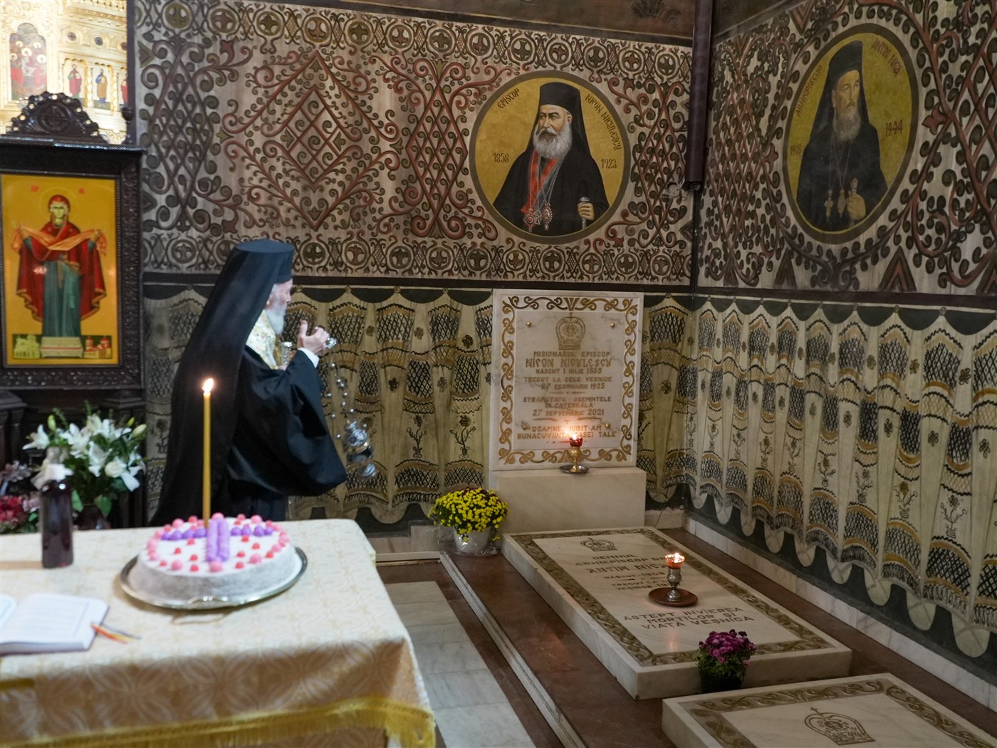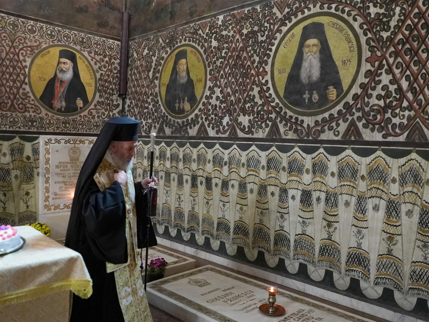 Ierarhul locului s-a rugat pentru odihna veşnică a domnitorului Alexandru Ioan Cuza şi a soţiei sale Elena Doamna, precum şi pentru Episcopul Melchisedec Ştefănescu şi urmaşii săi în scaunul arhieresc de la Dunărea de Jos, trecuţi la cele veşnice.