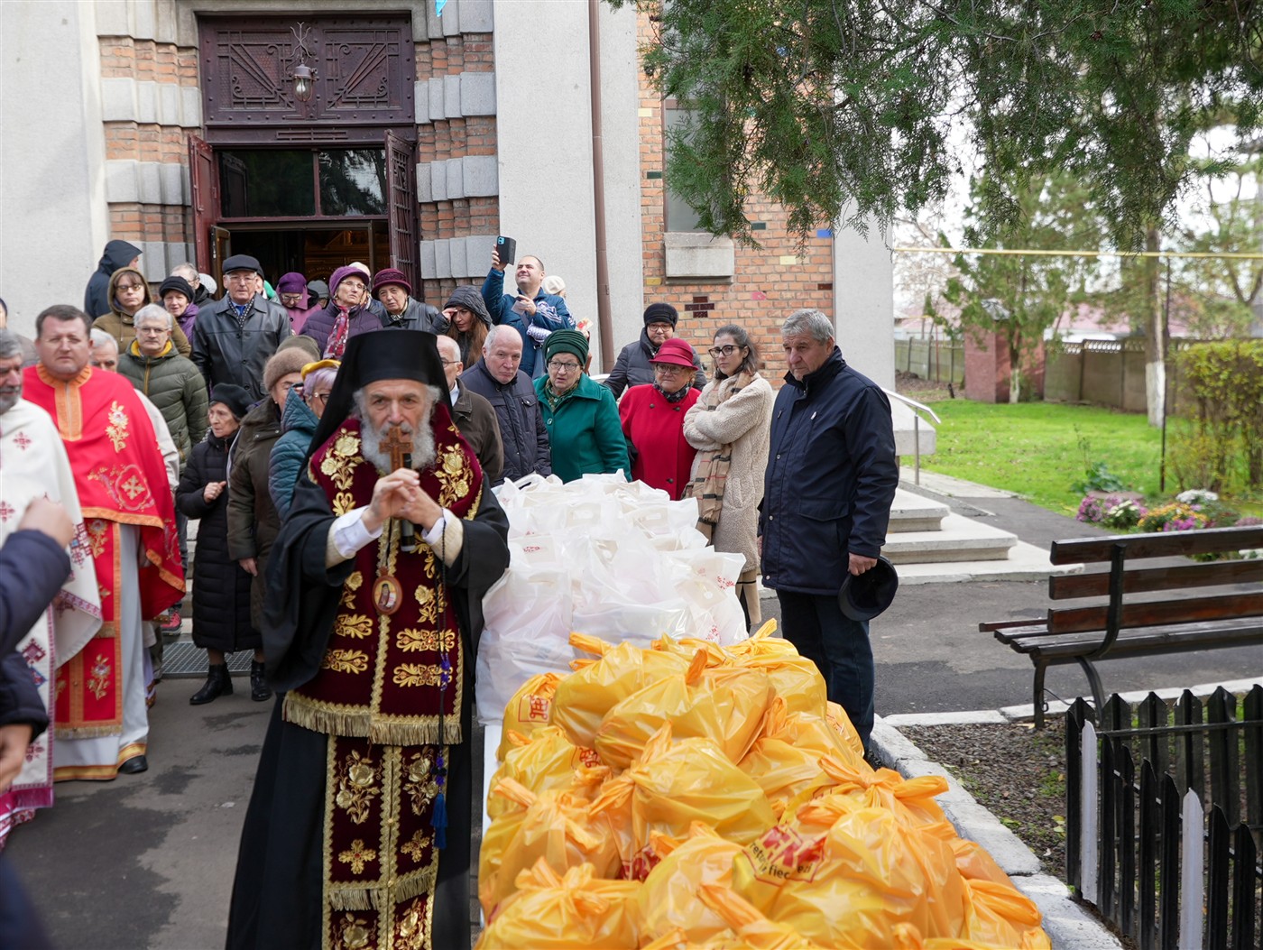 Cu prilejul hramului, 25 de semeni nevoiaşi de la adăpostul de noapte din apropierea bisericii au primit pachete cu alimente în valoare de 2500 lei.