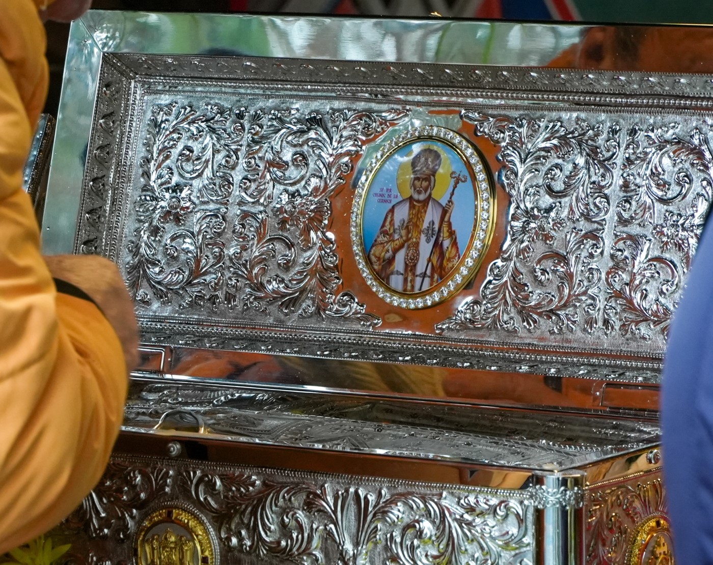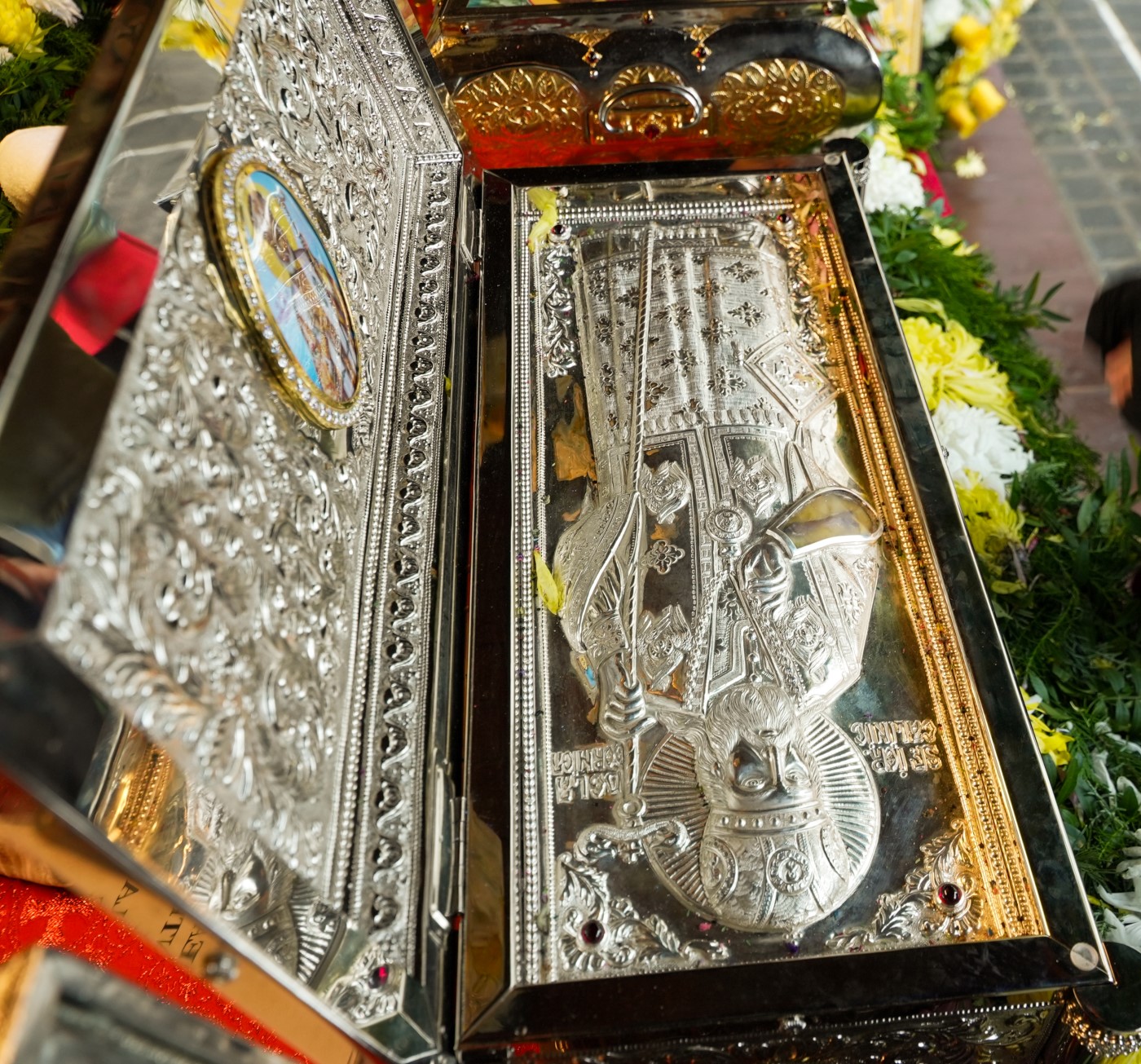 În baldachinul special amenajat în proximitatea Catedralei, alături de moaştele Sfântului Ierarh Calinic de la Cernica au fost aşezate spre închinare şi moaştele Sfântului Apostol Andrei şi cele ale Sfinţilor Tămăduitori Pantelimon, Efrem cel Nou, Nectarie de Eghina şi Luca al Crimeei, din patrimoniul sacru al Reşedinţei arhiepiscopale.