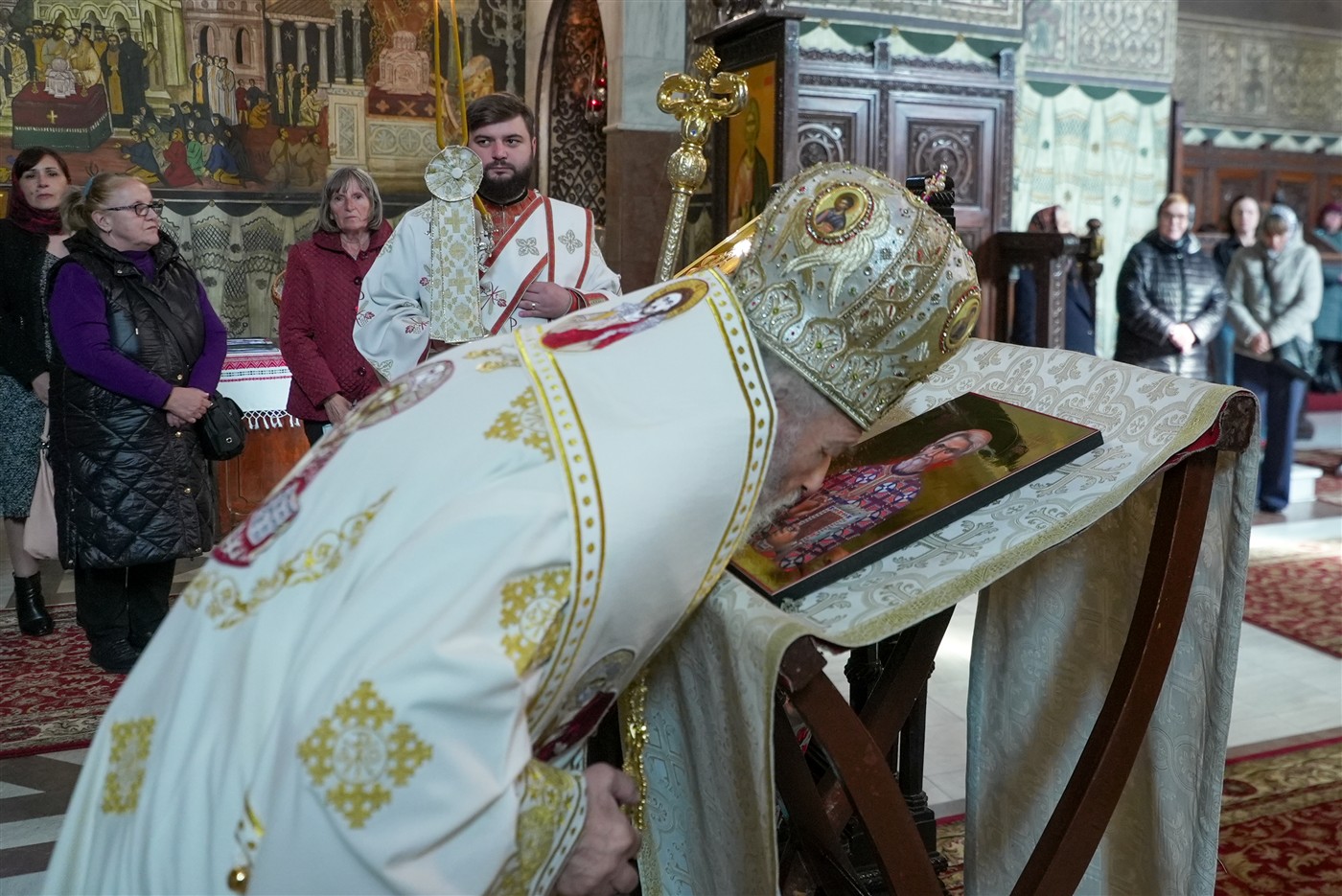 Pe tot parcursul slujbei, credincioşii prezenţi s-au putut închina şi la icoana Sfântului Preot Mărturisitor Dumitru Stăniloae, a cărui proclamare locală a canonizării a avut loc sâmbătă 4 octombrie, la Mănăstirea Cernica.