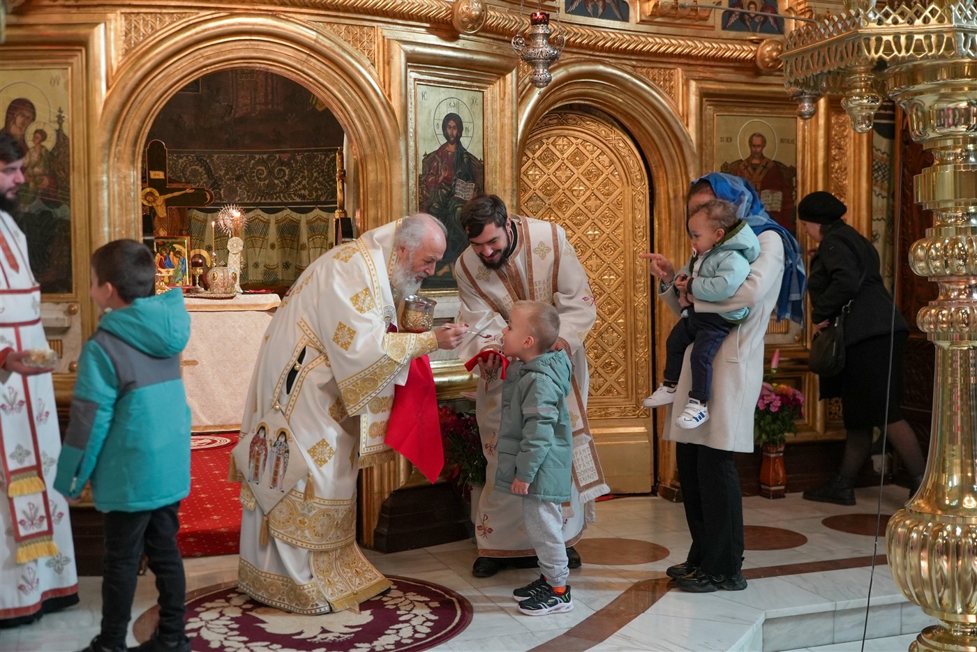 La momentul cuvenit, mai mulți copii prezenți la Sfânta Liturghie au fost împărățiți cu Sfintele Taine.