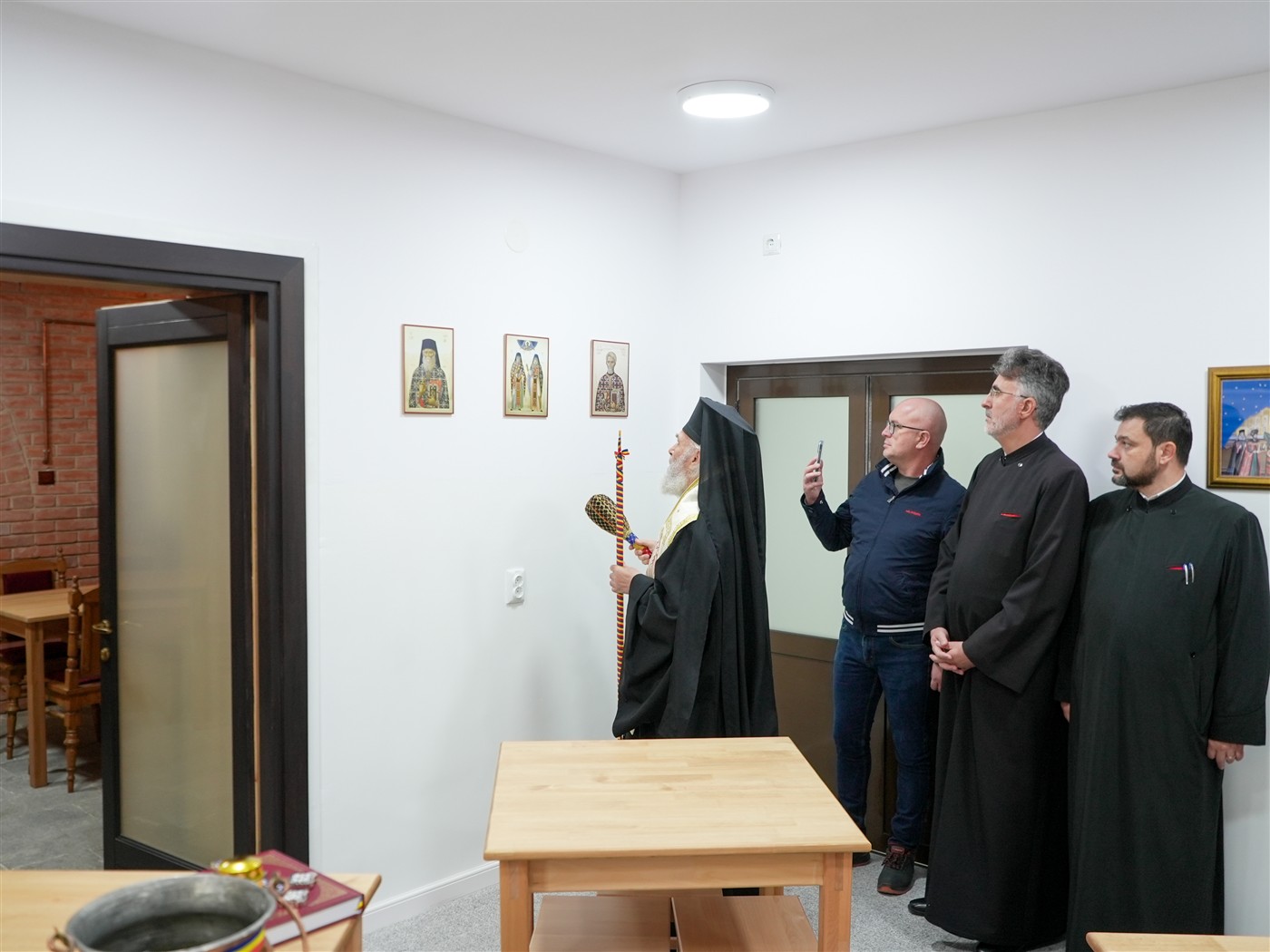 La slujba de binecuvântare au participat membrii Permanenţei Consiliului Eparhial, angajaţii cantinei şi reprezentanţii echipei care au efectuat lucrările de reabilitare,
