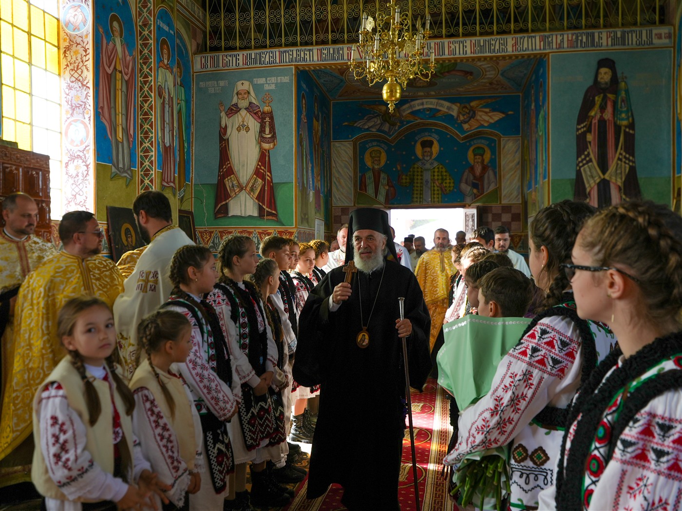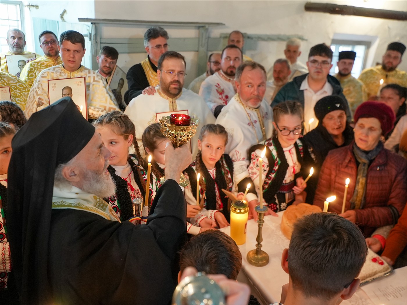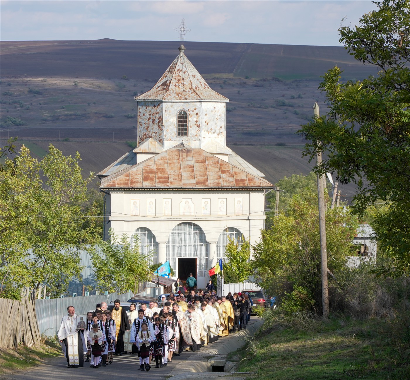De la această biserică, ierarhul locului împreună cu slujitorii Sfintelor Altare şi mulţimea de tineri şi credincioşi au mers în procesiune către biserica cu hramul ”Adormirea Maicii Domnului” din aceeaşi localitate, aflată în prezent în restaurare, unde, în urmă cu 120 de ani, Sfântul Constantin Sârbu a primit Taina Sfântului Botezului.