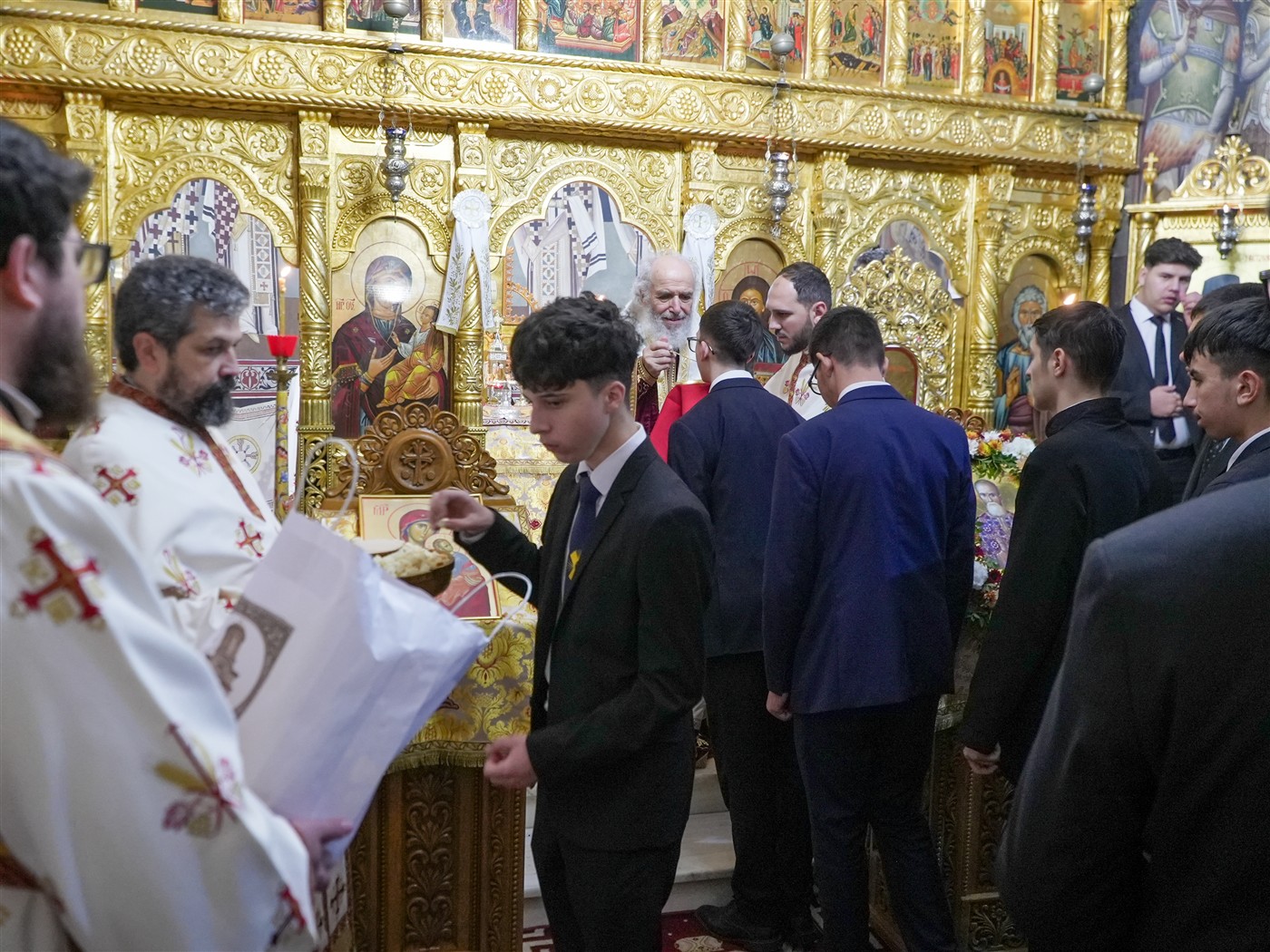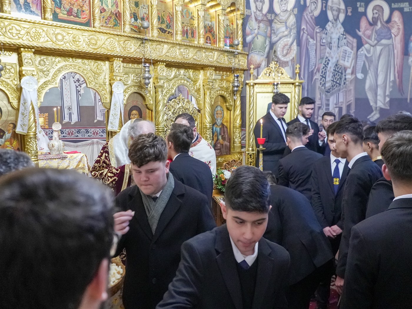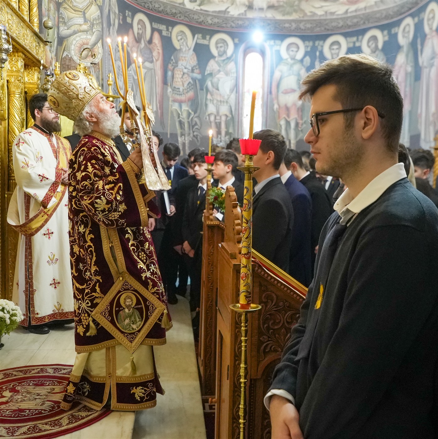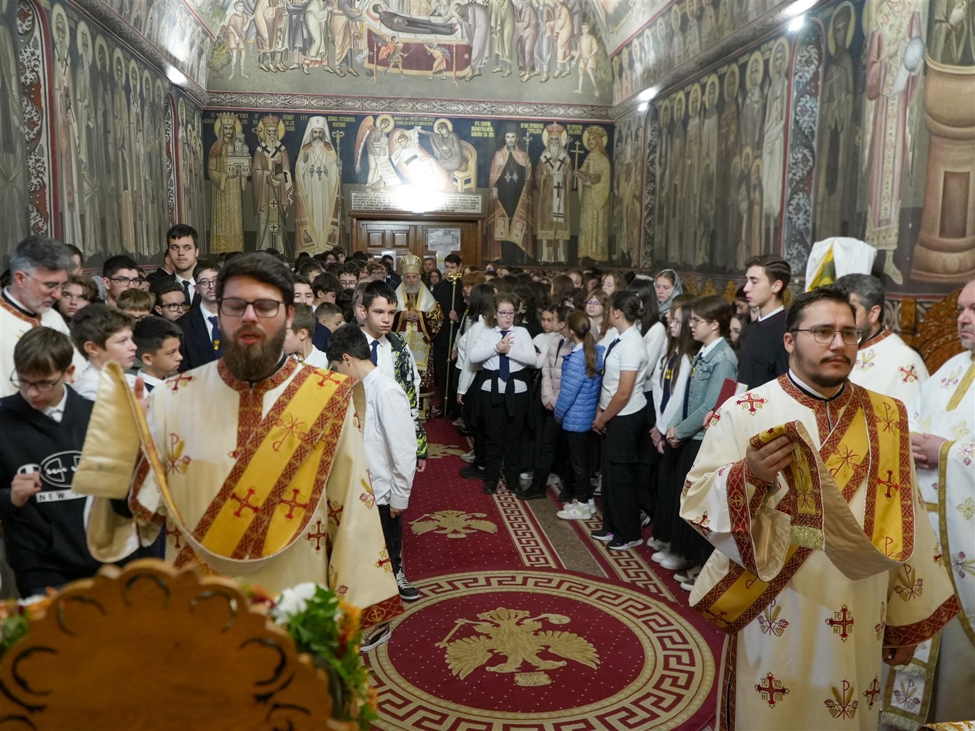 În soborul de slujitori au fost clerici din Administraţia eparhială şi preoţi profesori de la Seminarul gălăţean, în prezenţa rugătoare a tinerilor seminarişti de la clasele primare, gimnaziale şi liceale, mulţi dintre aceştia fiind împărtăşiţi cu Sfintele Taine.