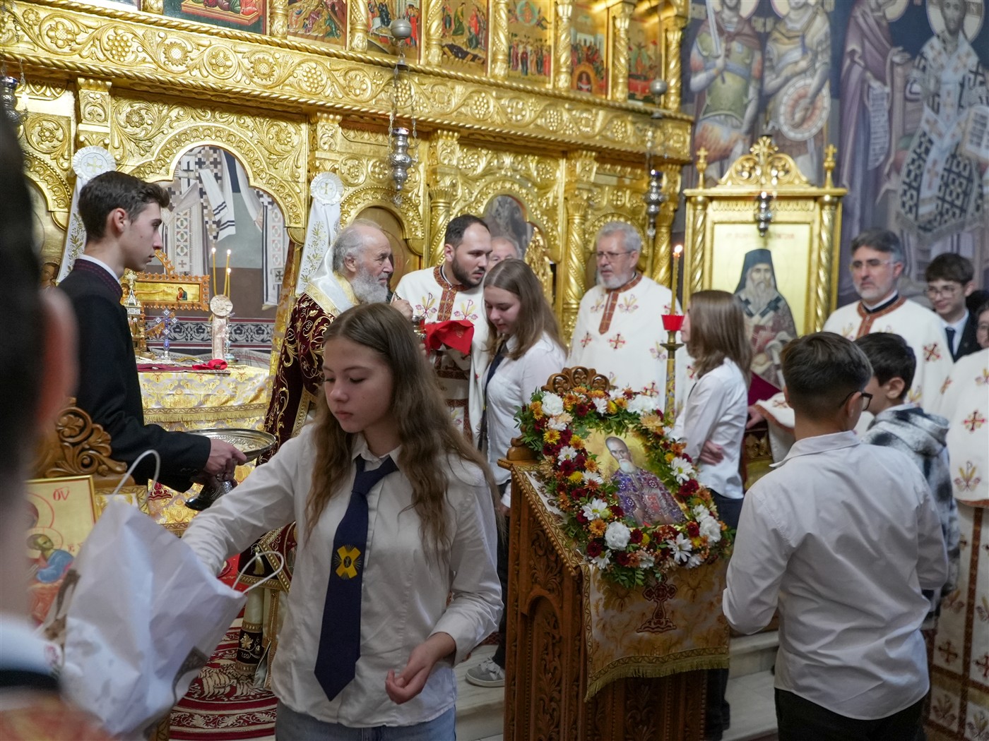 Cuvântul de învăţătură adresat de chiriarhul Dunării de Jos, în special elevilor de la clasele primare, a cuprins aspecte din perioada copilăriei Sfântului Constantin Sârbu, rămas fără mamă la vârsta de numai un an, şi parcursul luminos către sfinţirea vieţii prin răbdare, smerenie şi credinţă puternică.