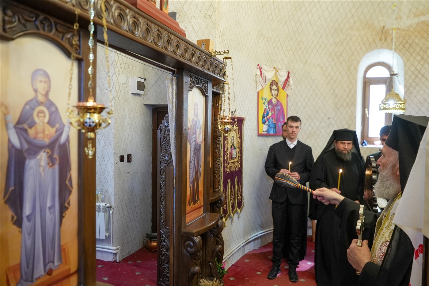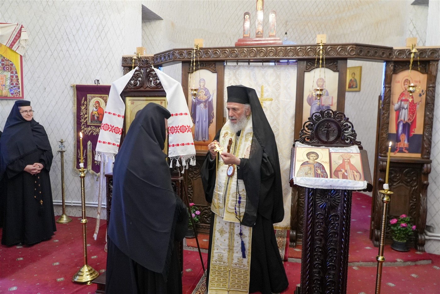 Evenimentul de astăzi a debutat în noua biserică ridicată în incinta mănăstirii cu slujba de binecuvântare pentru slujire, oficiată de Înaltpreasfinţitului Părinte Arhiepiscop Casian în prezenţa membrilor Permanenţei Consiliului eparhial, a celor opt protoierei, a stareţilor şi stareţelor de la mănăstirile din cuprinsul Arhiepiscopiei Dunării de Jos şi a muncitorilor din cadrul fermei anexe.