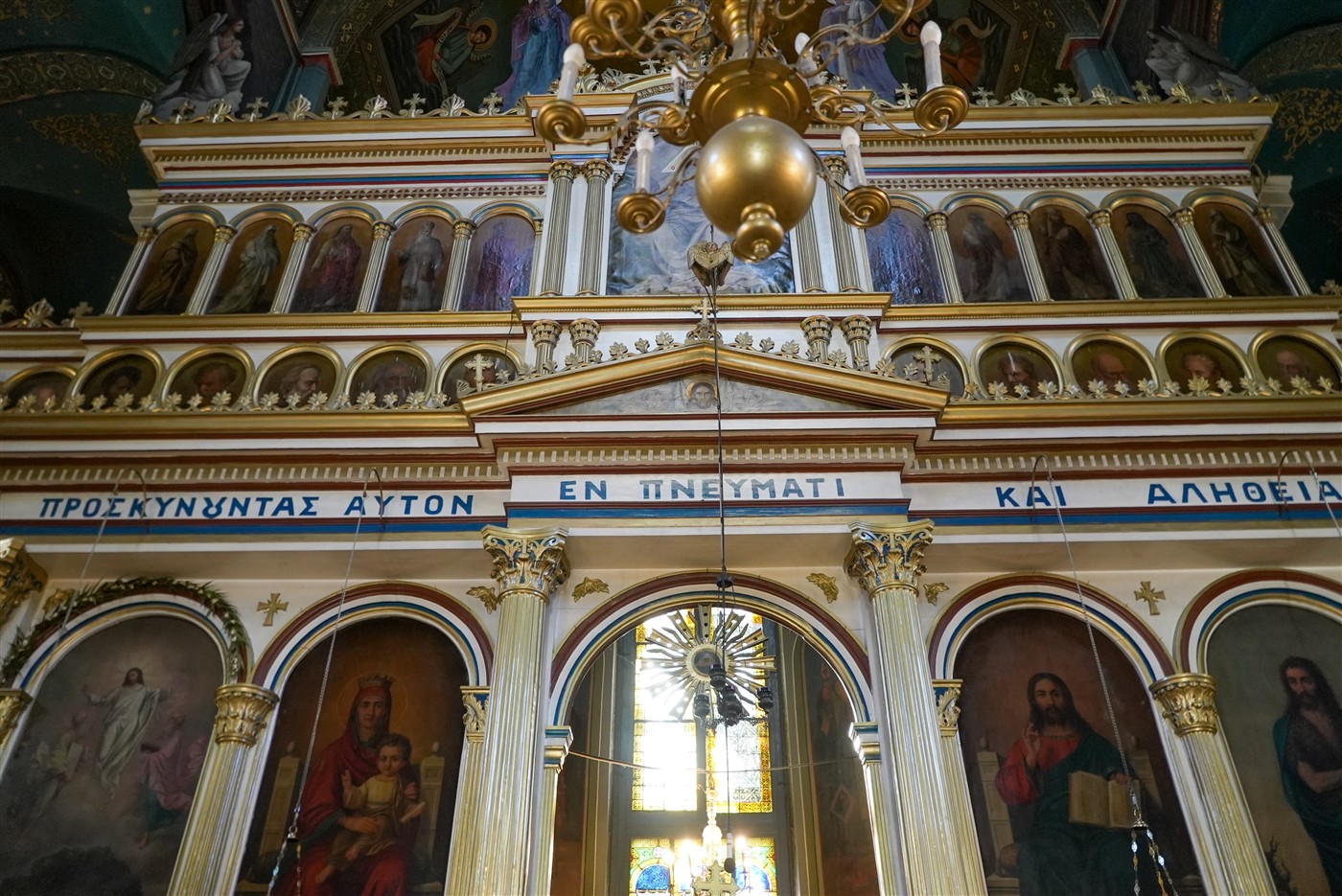 La intrarea principală, pe o placă de marmură, sunt gravate numele ctitorilor principali ai bisericii: Andreas Panas, Dimitrios Rodokanakis și Constantin Sakomanos.