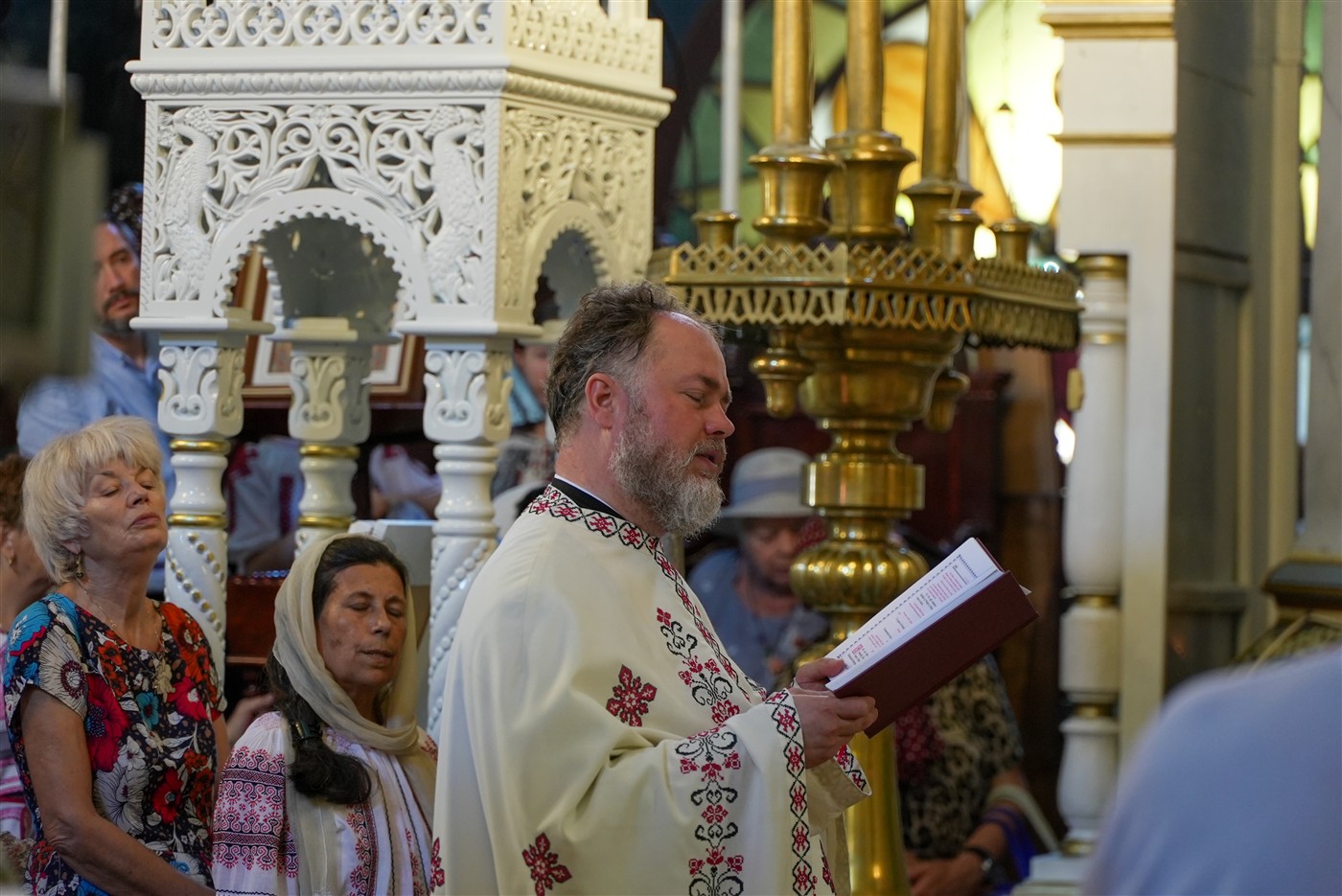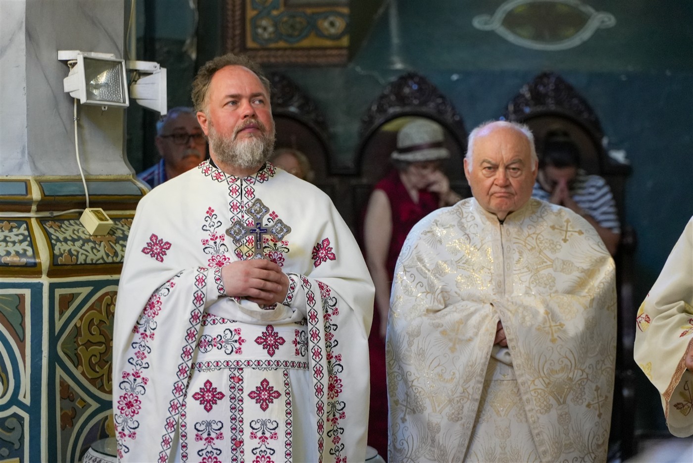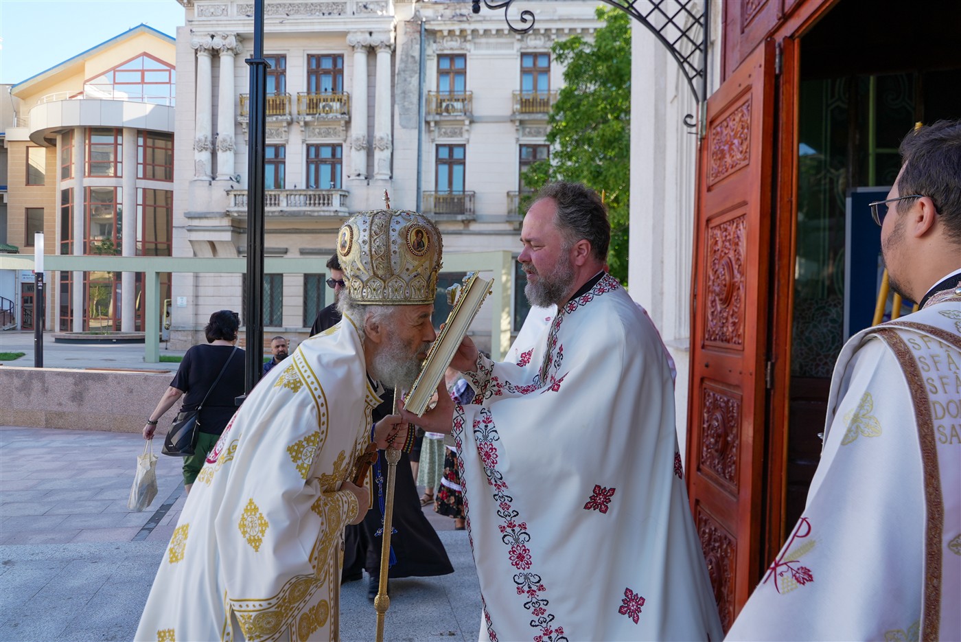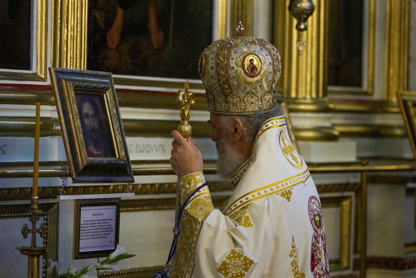 Slujba Sfintei Liturghii a fost oficiată de către Înaltpreasfinţitul Părinte Casian, Arhiepiscopul Dunării de Jos, împreună cu un sobor de preoţi şi diaconi, în prezenţa membrilor comunităţii elene din Galaţi, precum şi a numeroşi credincioşi din parohie şi din municipiul de la Dunăre.