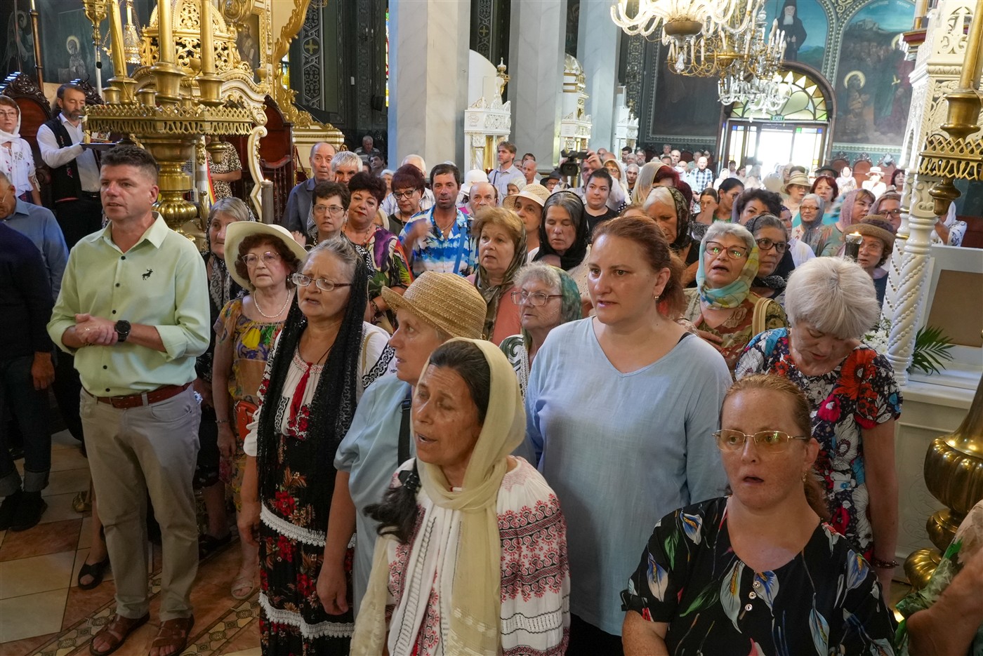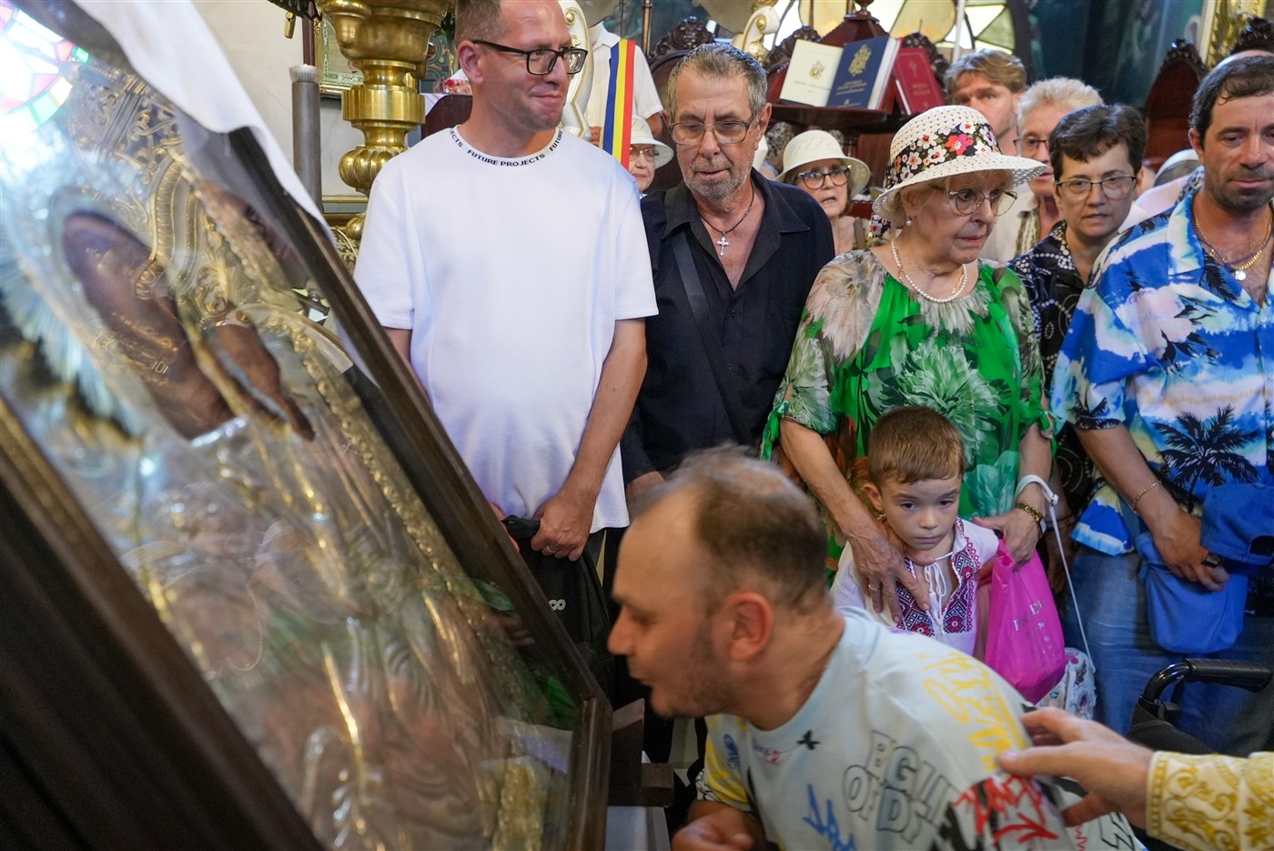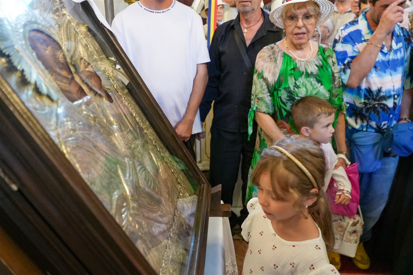 În faţa icoanei Maicii Domnului, într-o atmosferă deosebită de evlavie, după ce ierarhul locului a cădit Sfânta Icoană, preoții slujitori în prezența multor credincioși au săvârşit slujba Acatistului Adormirii Maicii Domnului.