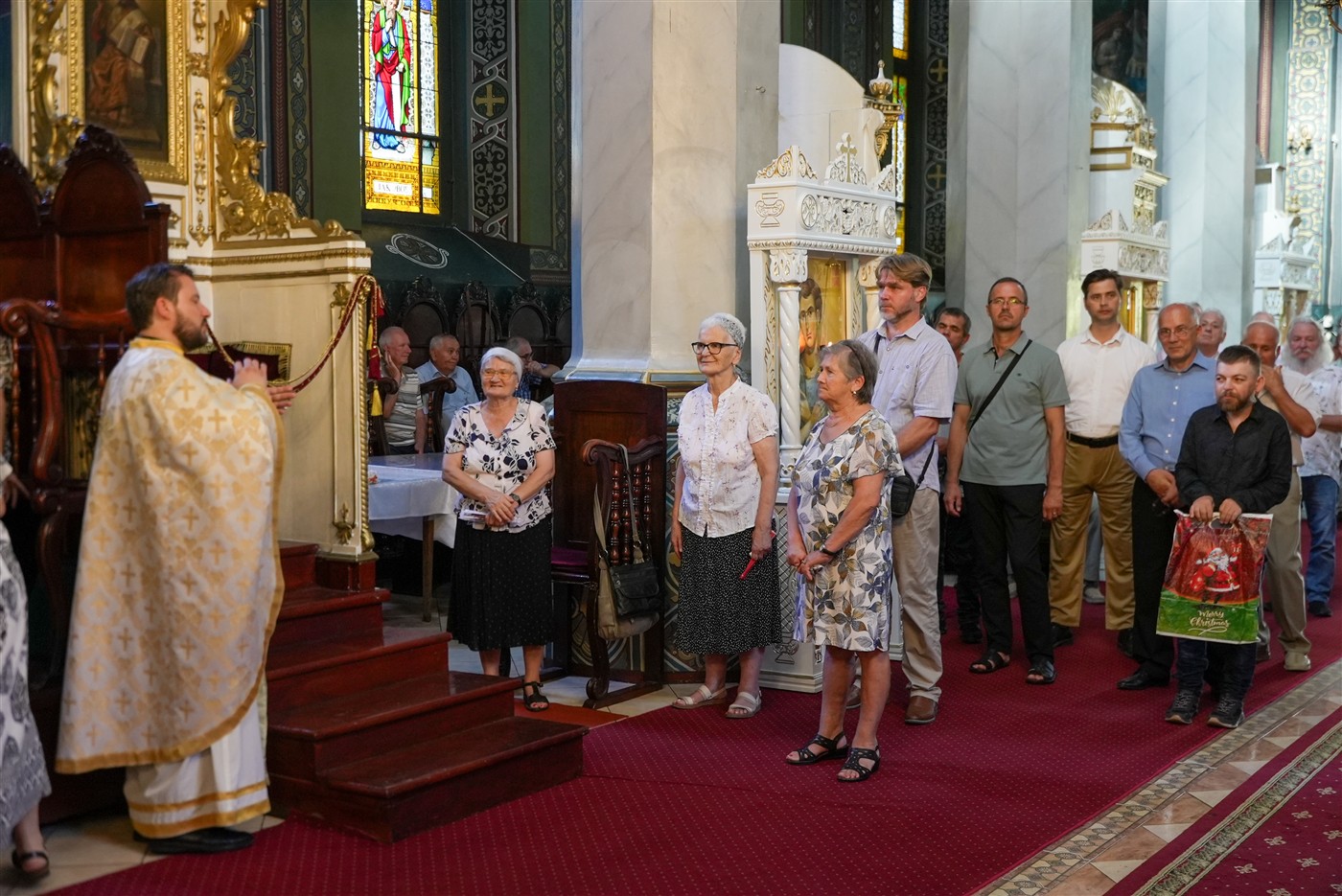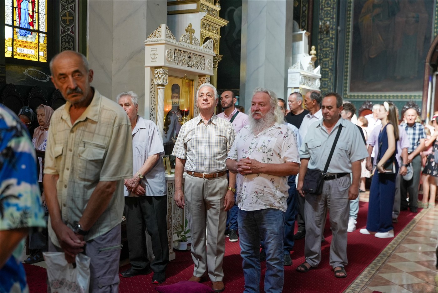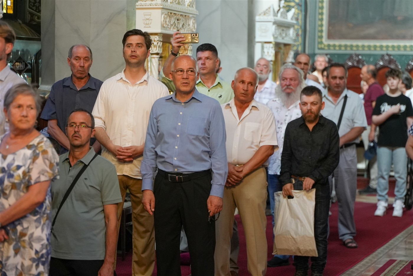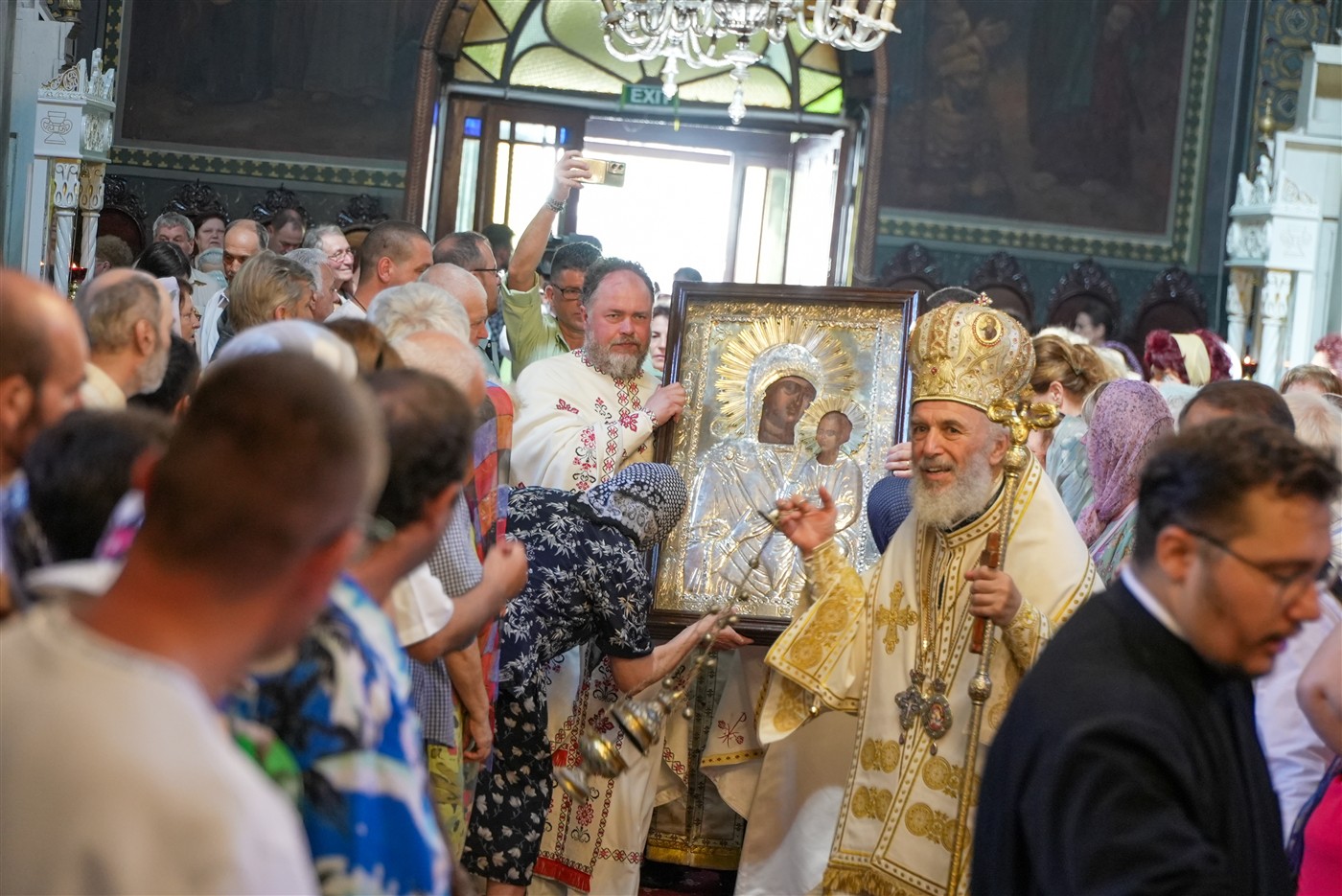 În faţa icoanei Maicii Domnului, într-o atmosferă deosebită de evlavie, după ce ierarhul locului a cădit Sfânta Icoană, preoții slujitori în prezența multor credincioși au săvârşit slujba Acatistului Adormirii Maicii Domnului.