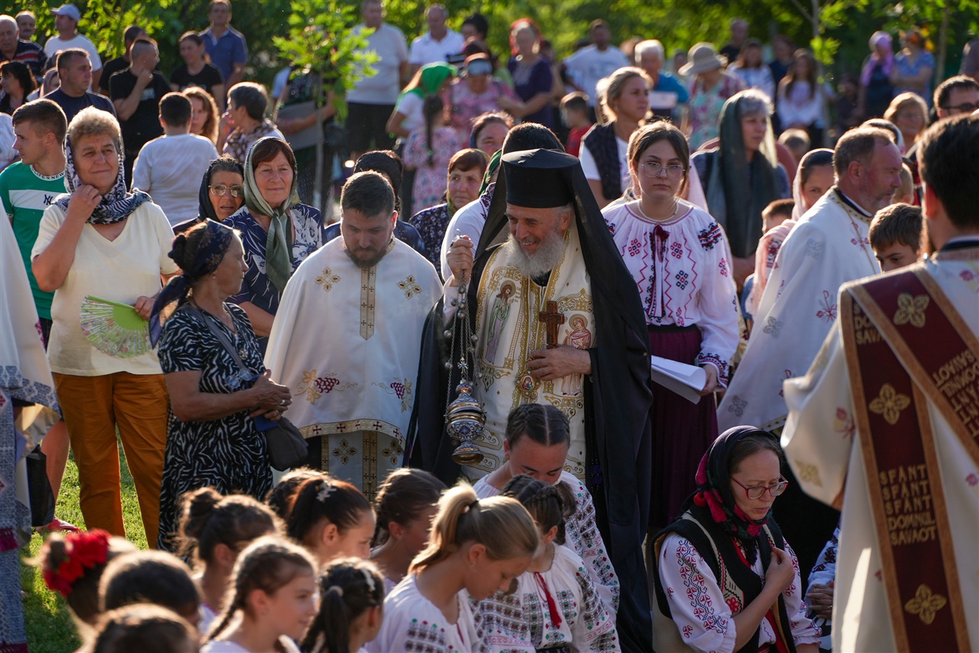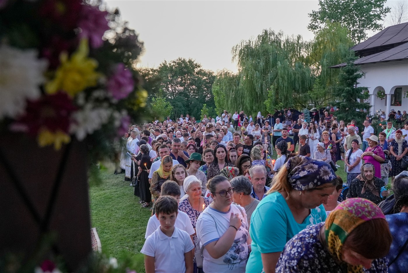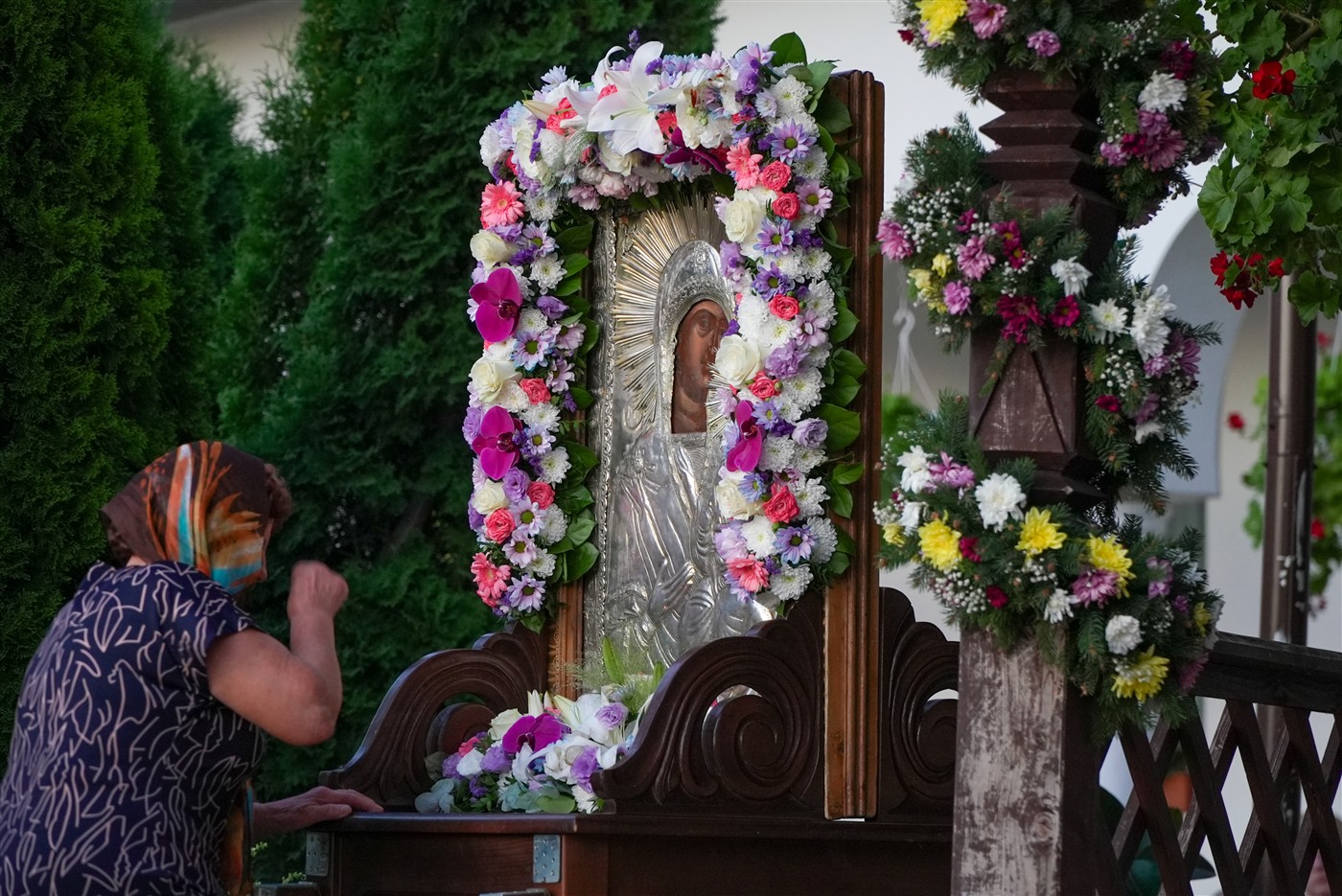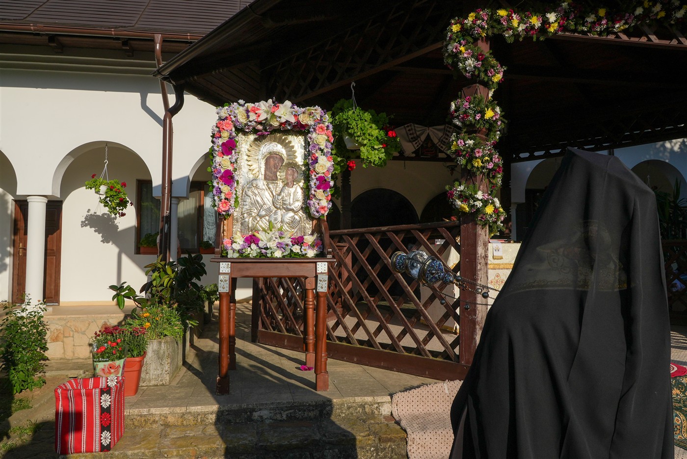 Ierarhul Dunării de Jos împreună cu un impresionant sobor de preoţi şi diaconi, însoţiţi de mulţimea credincioşilor, au pornit în procesiune de la troiţa satului Adam până la sfântul locaş şi apoi la altarul de vară al acestei mănăstiri, unde icoana făcătoare de minuni a fost aşezată spre închinare.