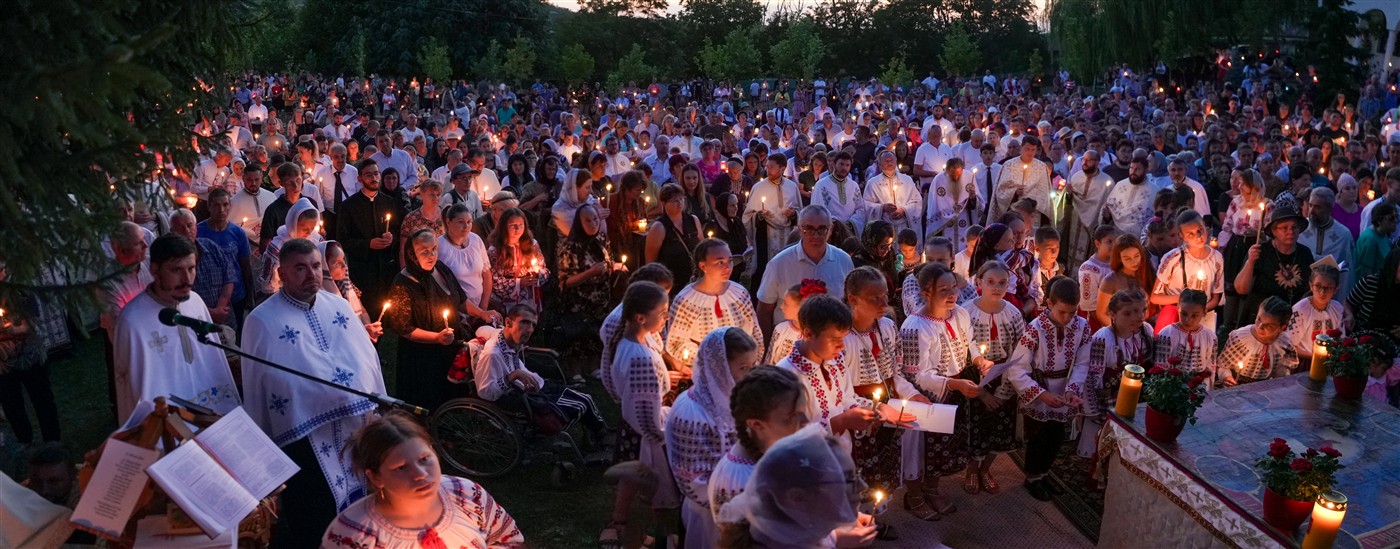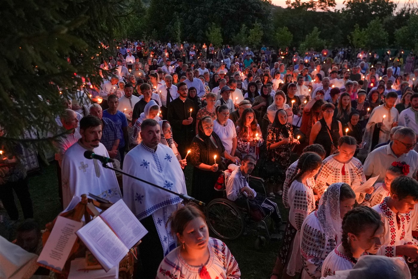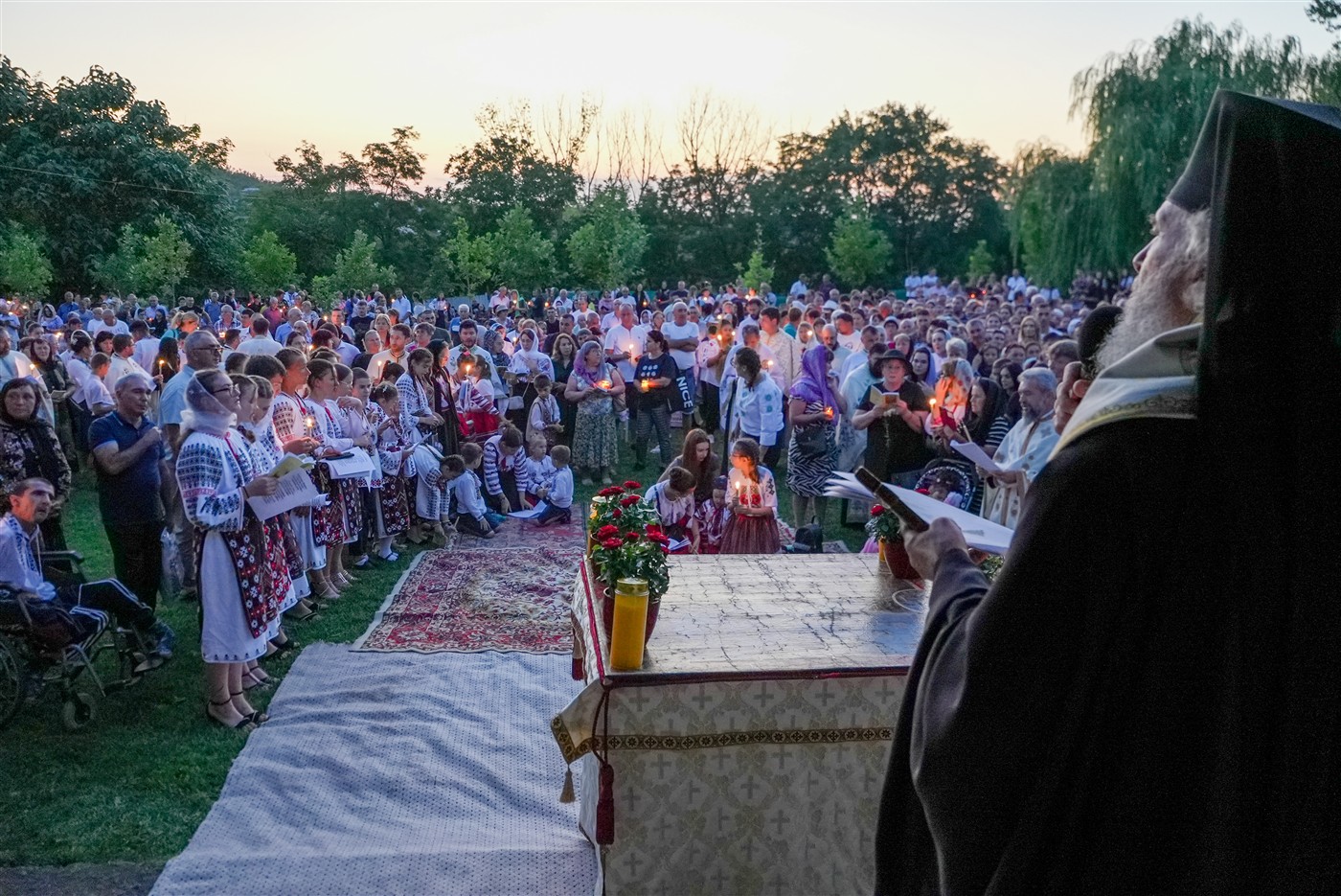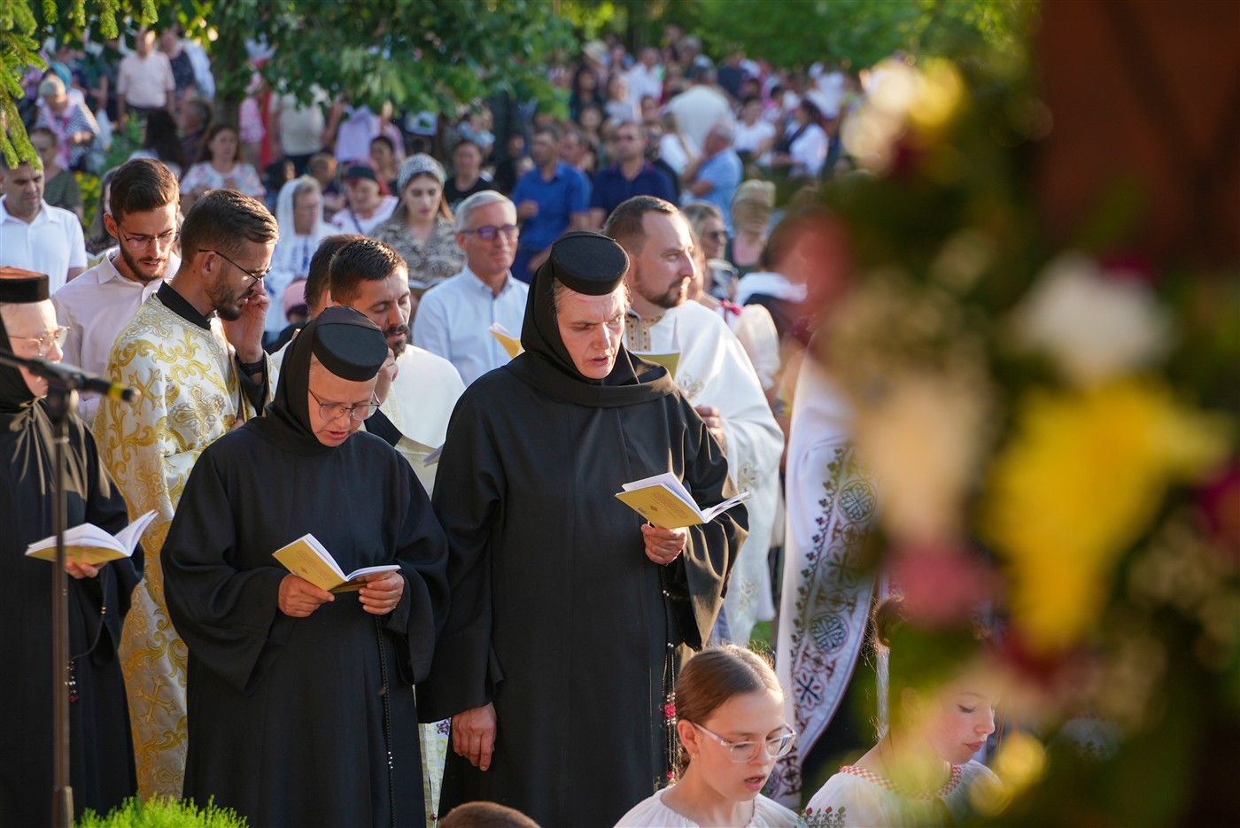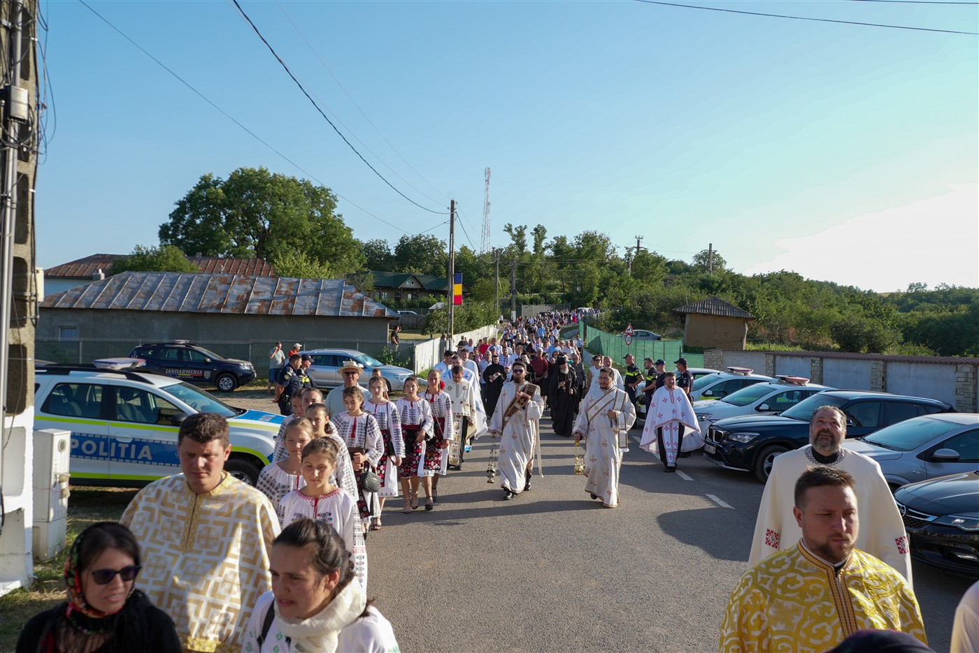 Ierarhul Dunării de Jos împreună cu un impresionant sobor de preoţi şi diaconi, însoţiţi de mulţimea credincioşilor, au pornit în procesiune de la troiţa satului Adam până la sfântul locaş şi apoi la altarul de vară al acestei mănăstiri, unde icoana făcătoare de minuni a fost aşezată spre închinare.