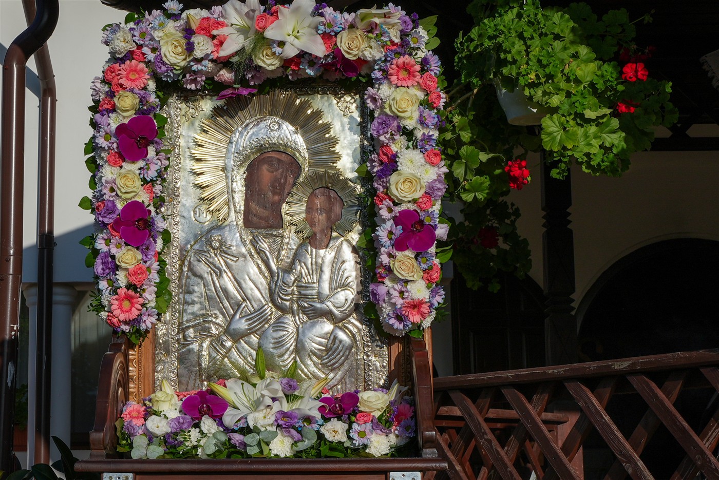 La final, toţi cei prezenţi au fost binecuvântaţi cu agheasmă de ierarhului locului, după ce aceştia au trecut pe sub Sfântul Epitaf şi pe sub sfânta icoană făcătoare de minuni, cântând pricesne închinate Maicii Domnului şi purtând în mâini lumânări aprinse.