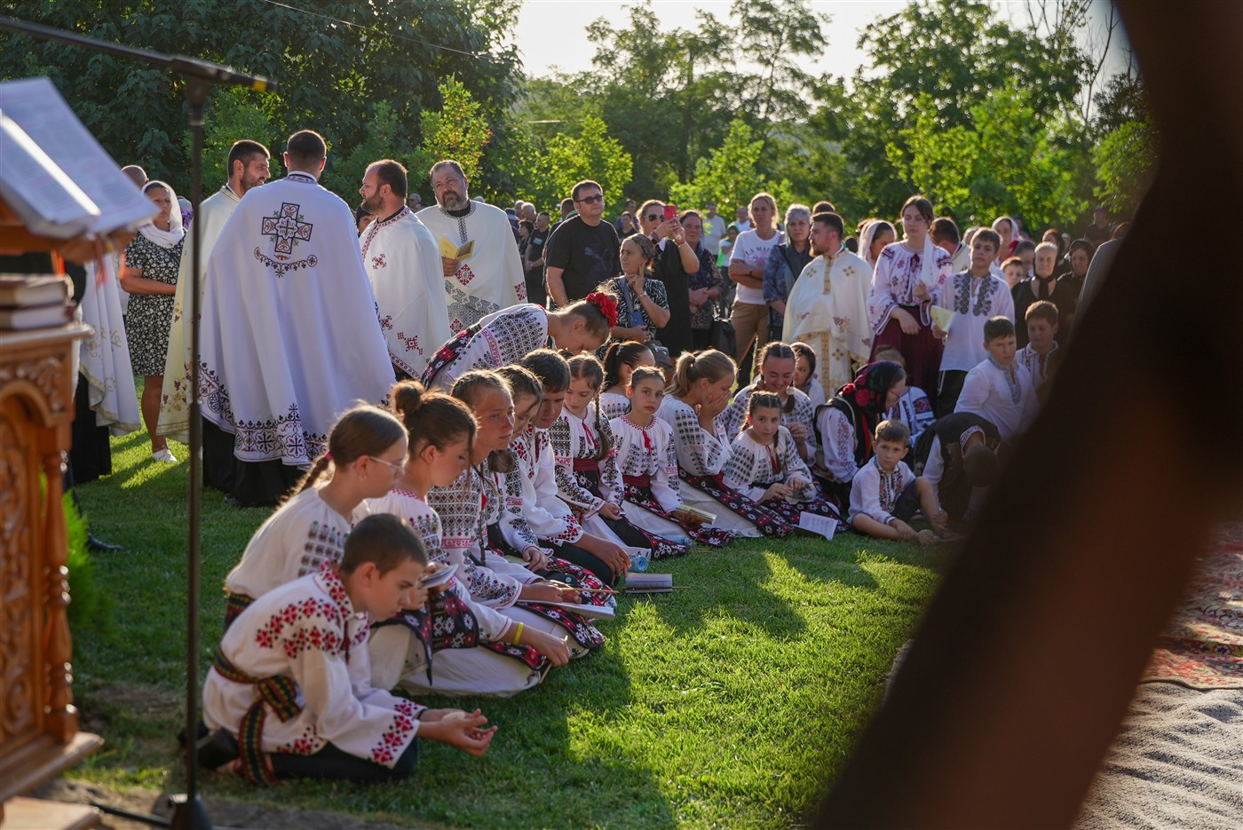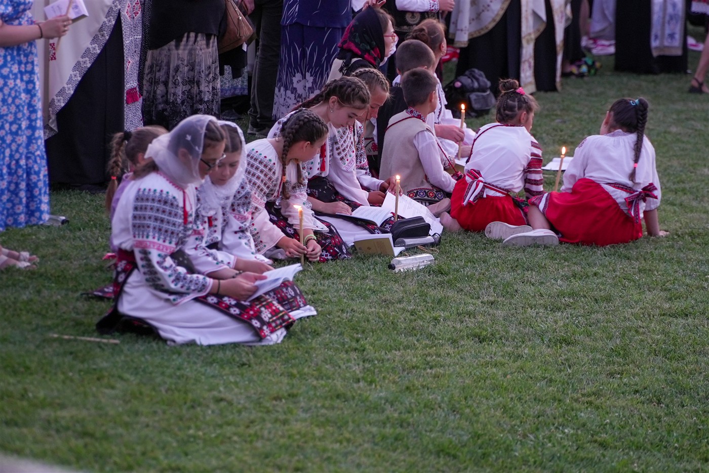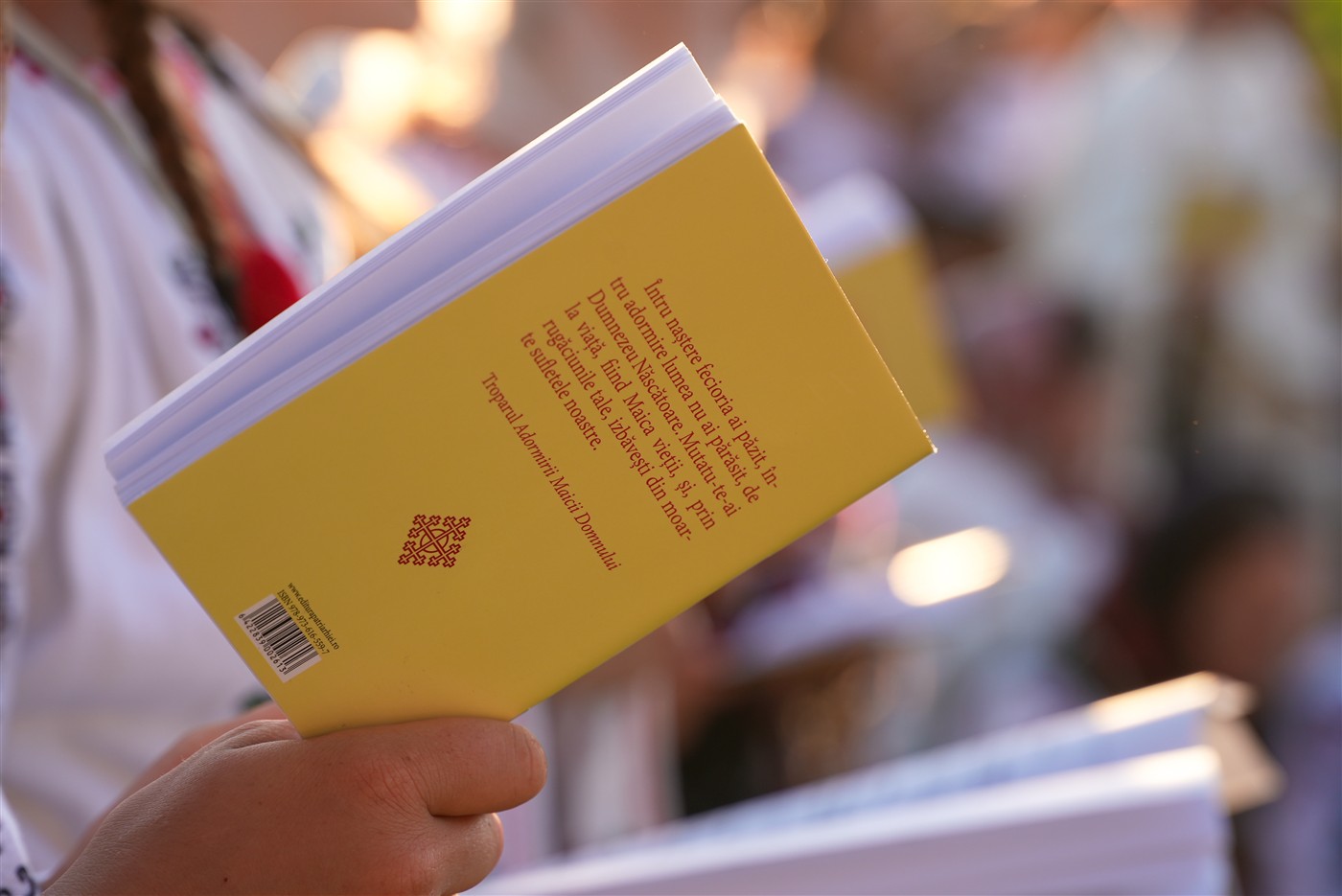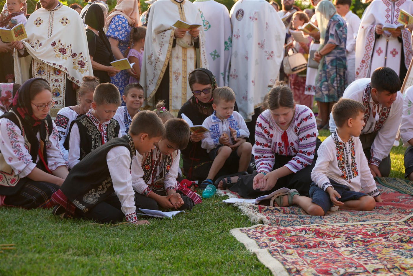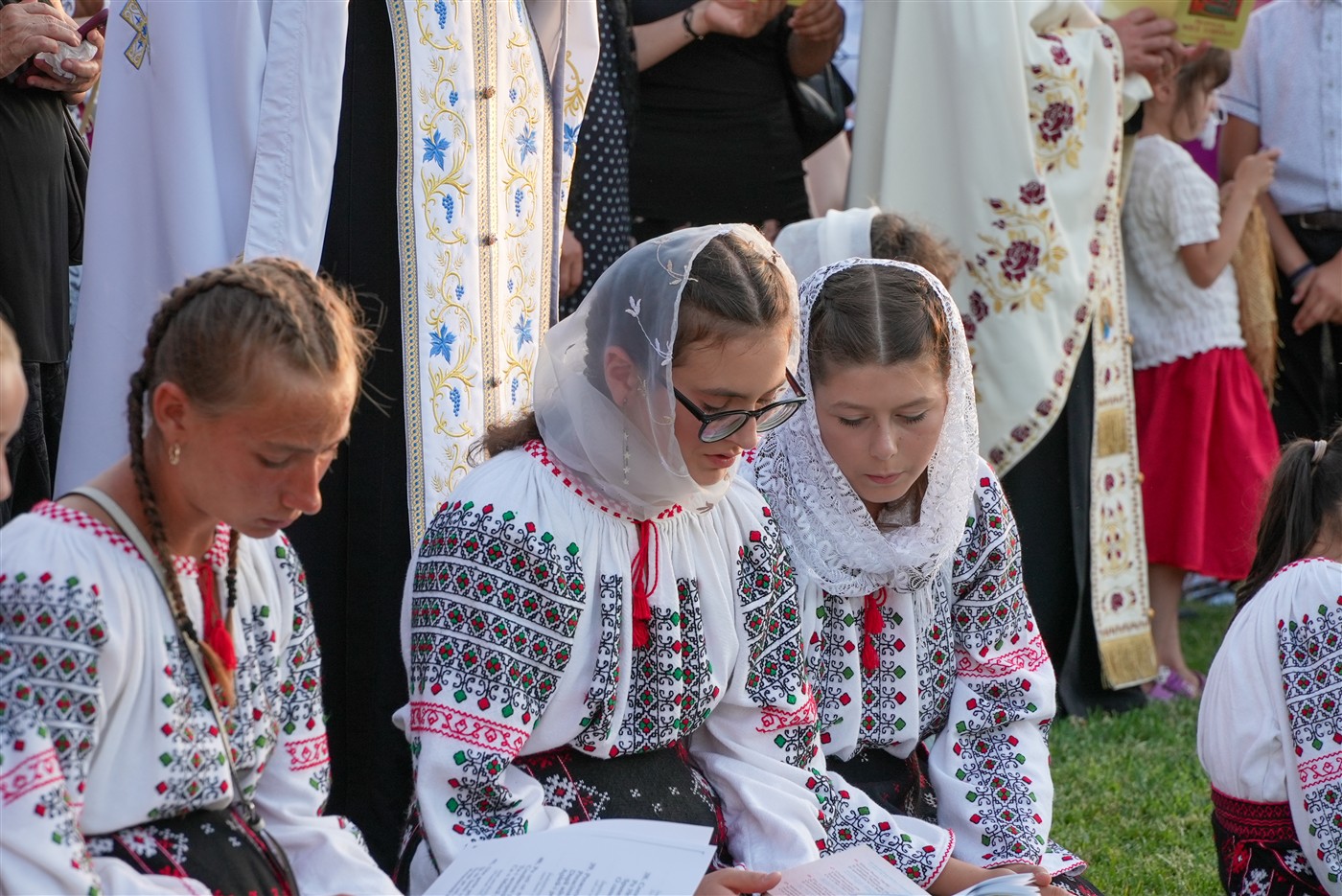 Cântarea a fost susţinută de credincioşi, slujitori, monahii, pelerini şi mulţi copii şi tineri îmbrăcaţi în costume tradiţionale româneşti, care au dorit din tot sufletul să o preacinstească pe Cea căreia i se mai spune şi „Sfânta de la Adam“.