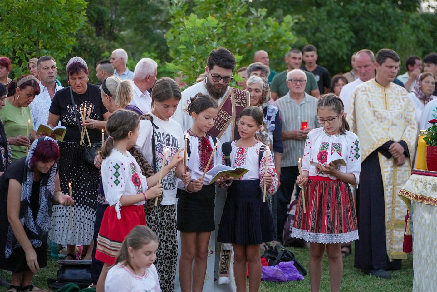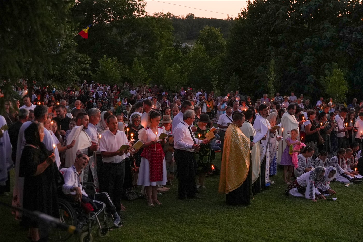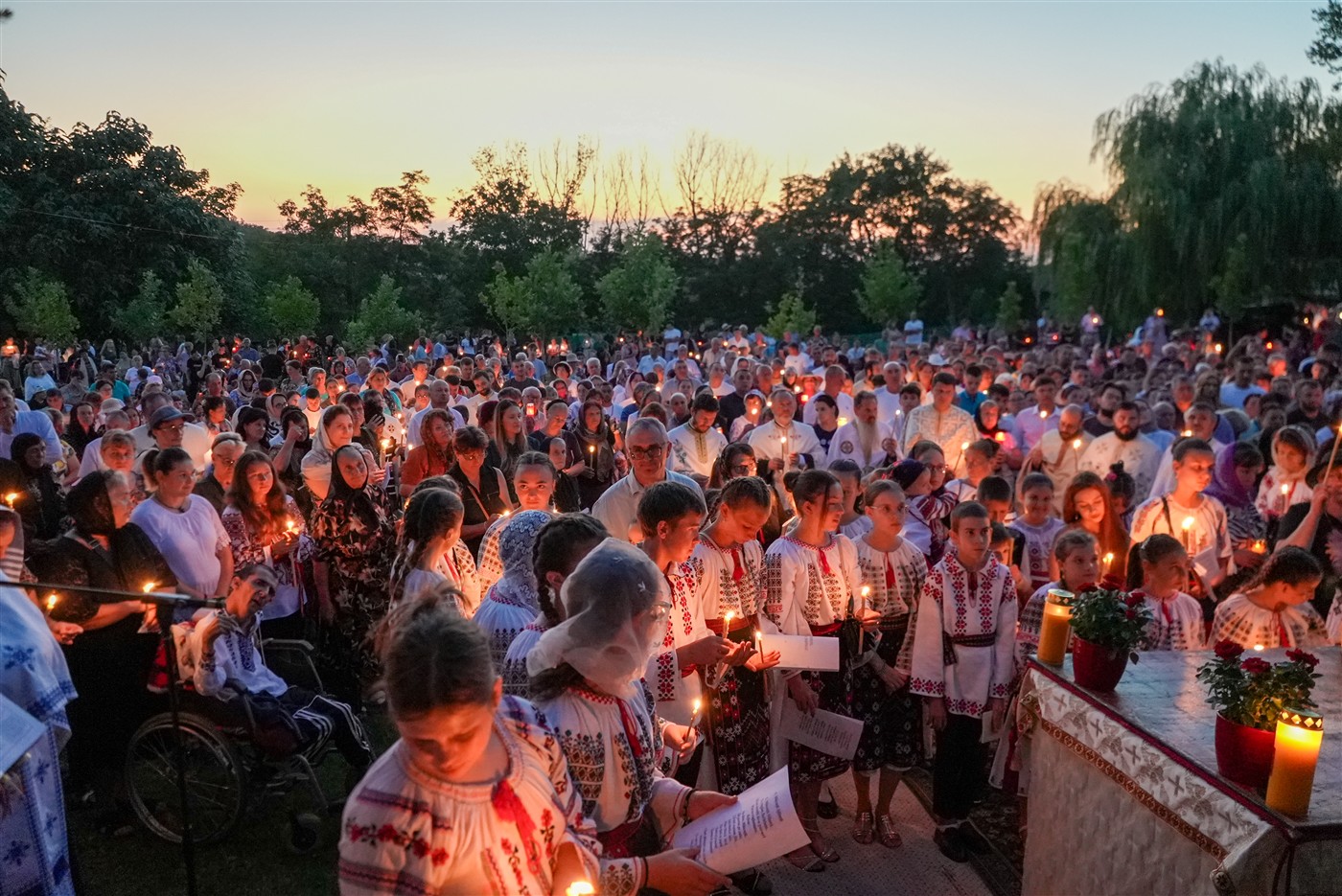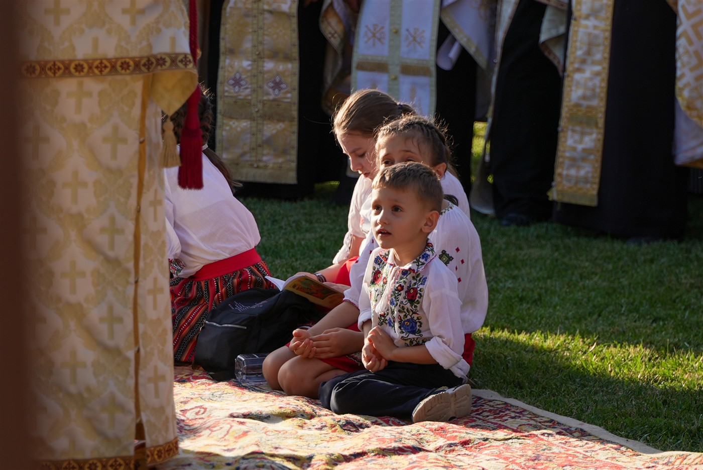 Cântarea a fost susţinută de credincioşi, slujitori, monahii, pelerini şi mulţi copii şi tineri îmbrăcaţi în costume tradiţionale româneşti, care au dorit din tot sufletul să o preacinstească pe Cea căreia i se mai spune şi „Sfânta de la Adam“.