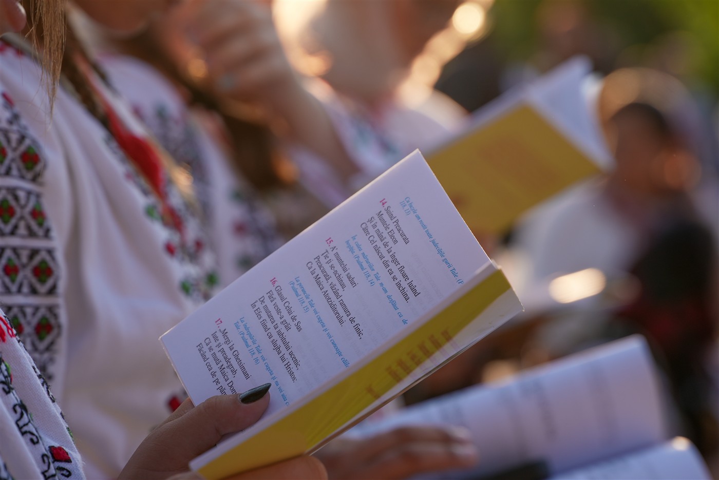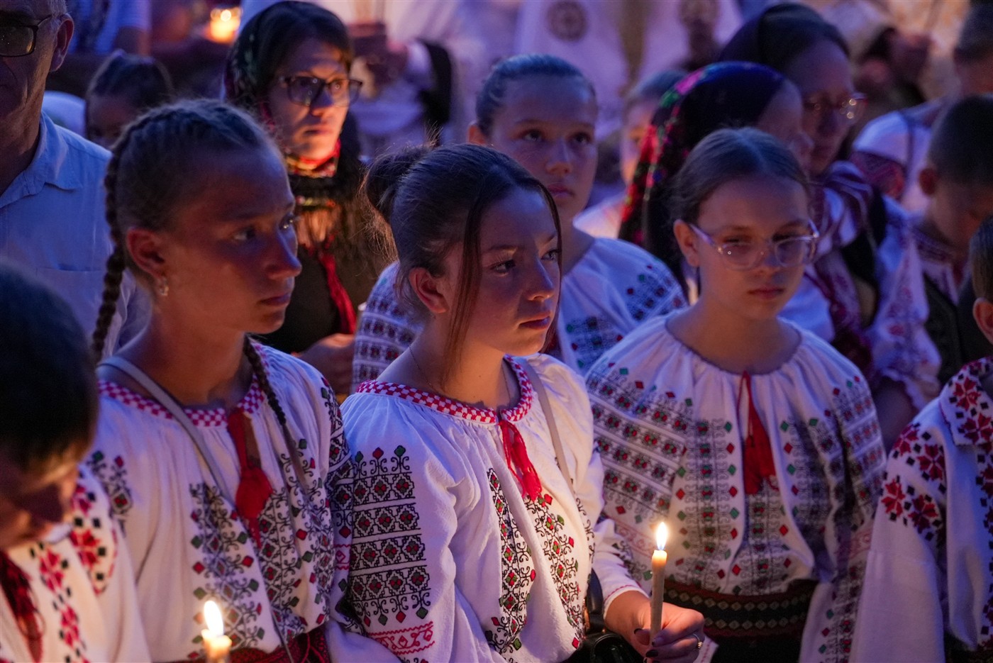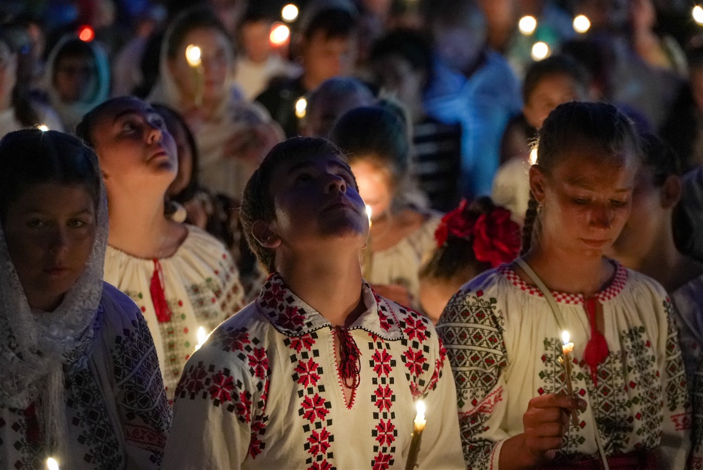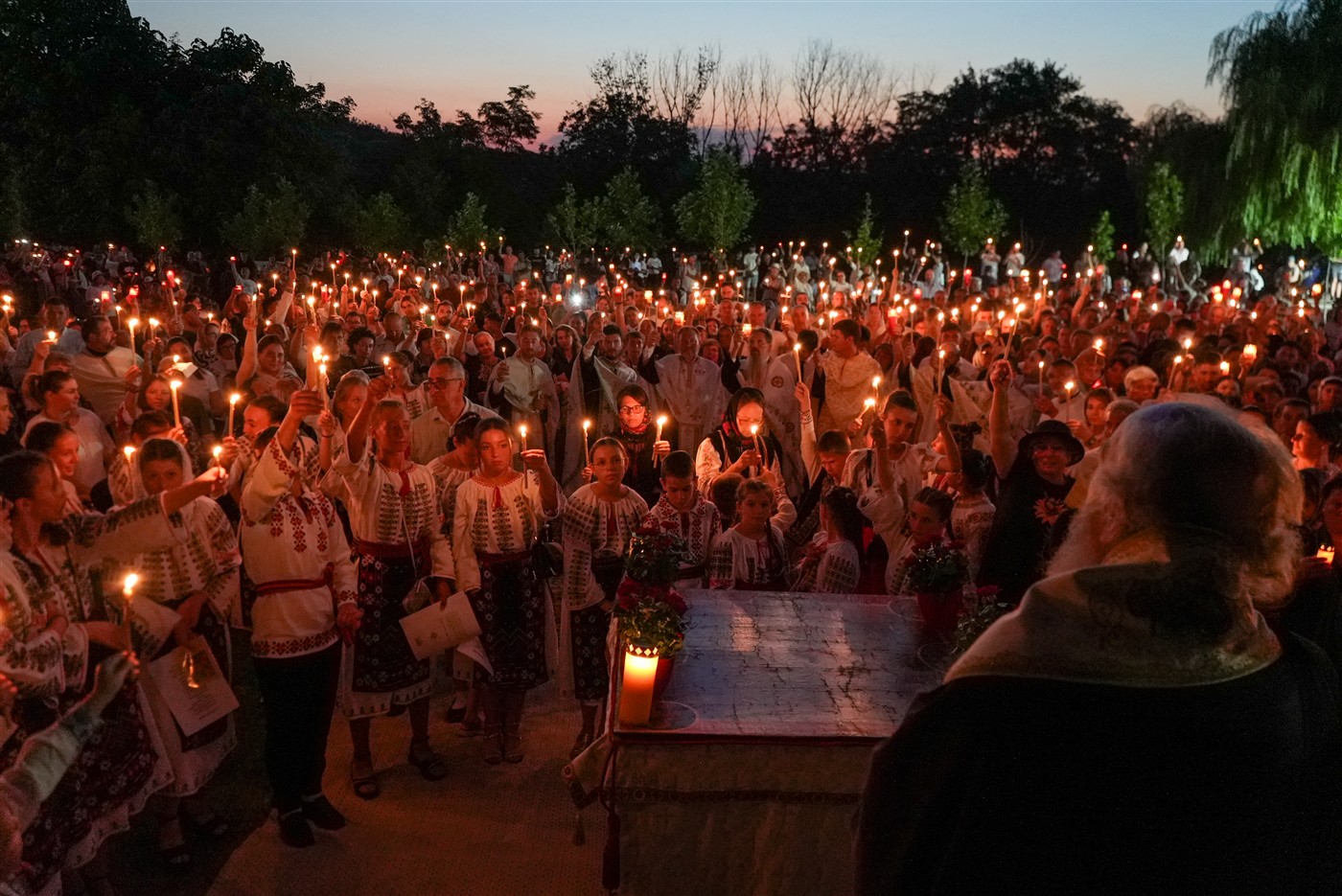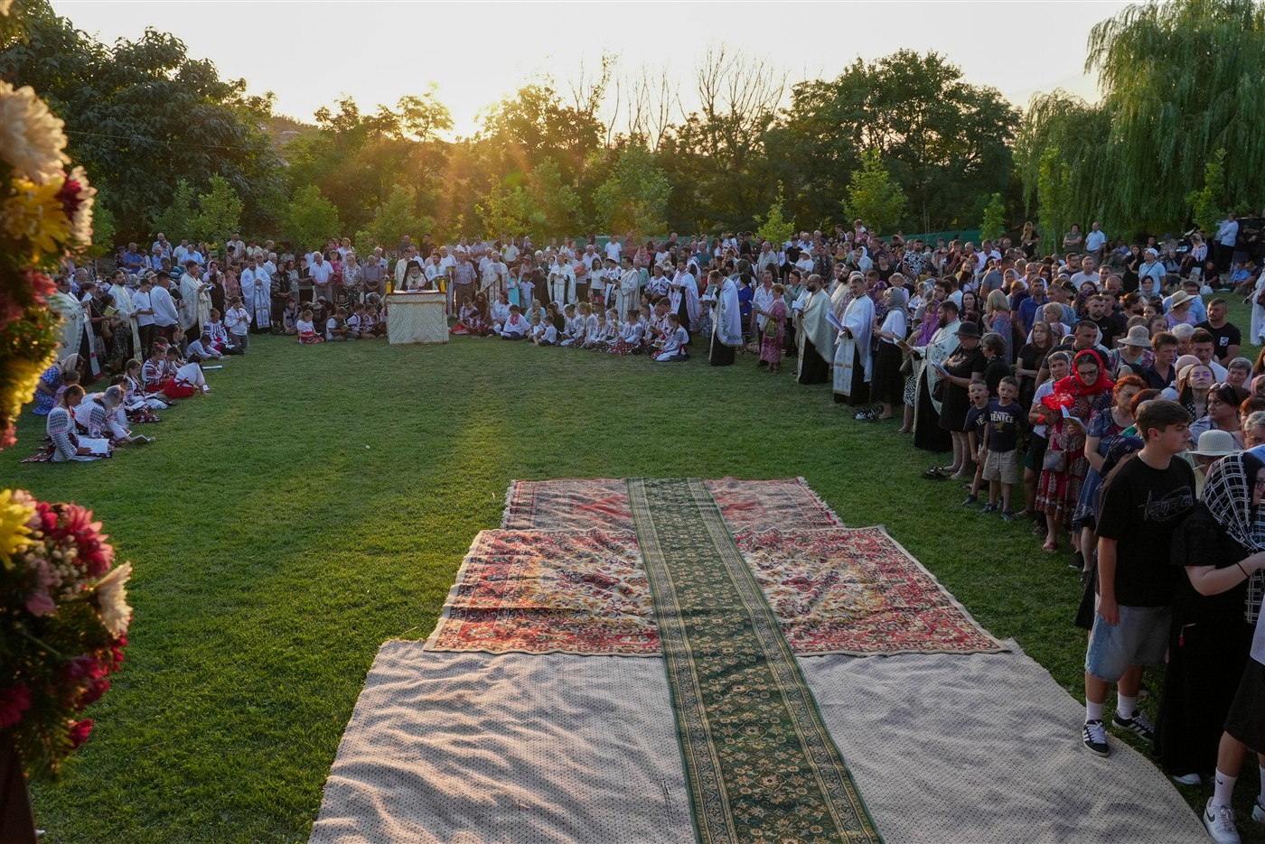 Cântarea a fost susţinută de credincioşi, slujitori, monahii, pelerini şi mulţi copii şi tineri îmbrăcaţi în costume tradiţionale româneşti, care au dorit din tot sufletul să o preacinstească pe Cea căreia i se mai spune şi „Sfânta de la Adam“.