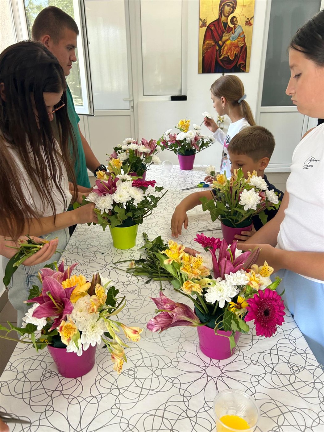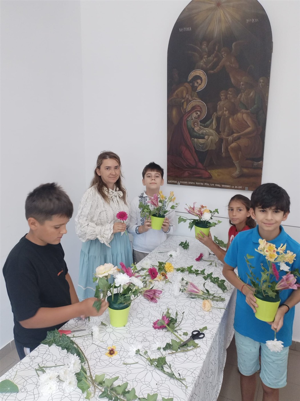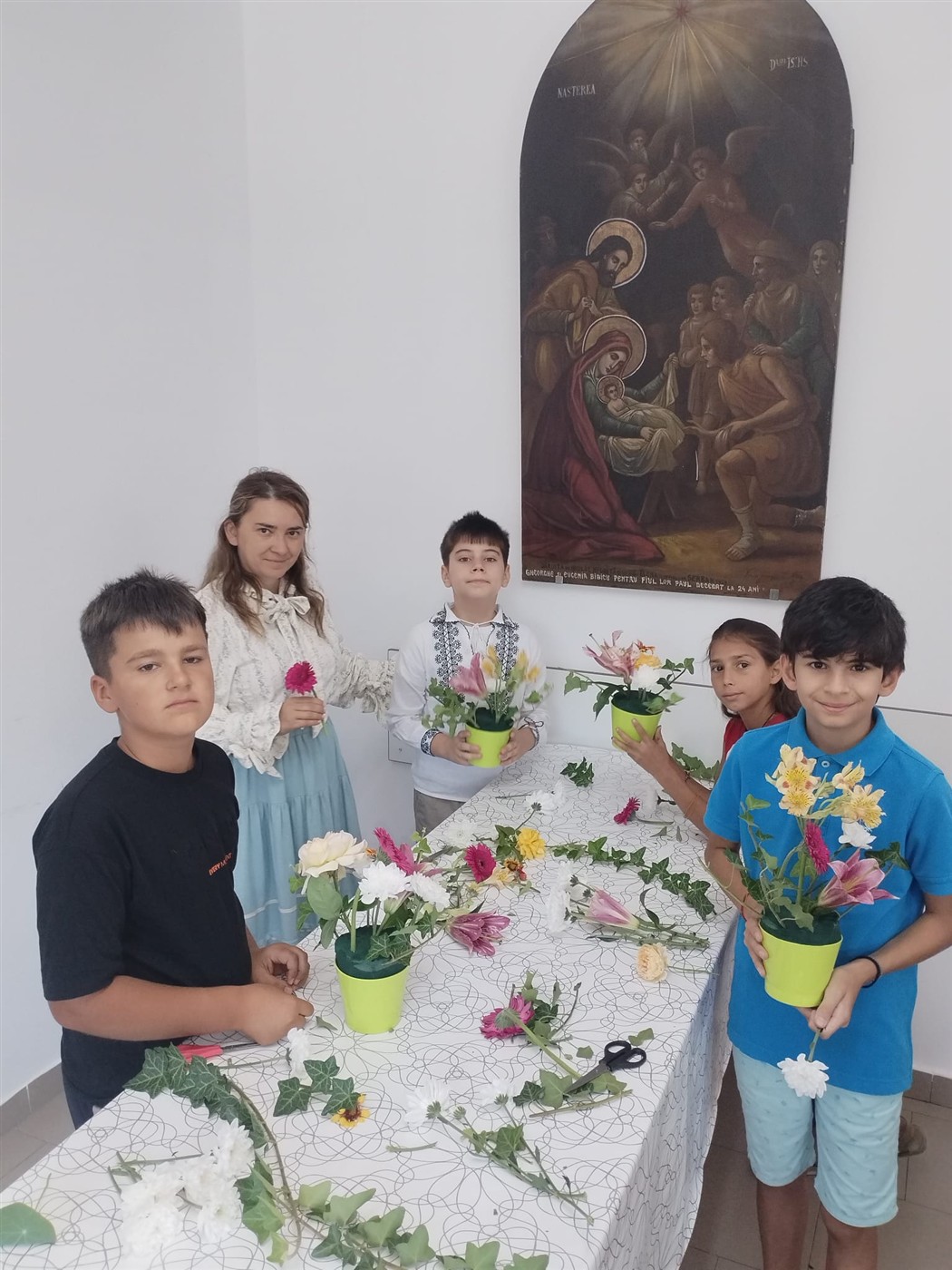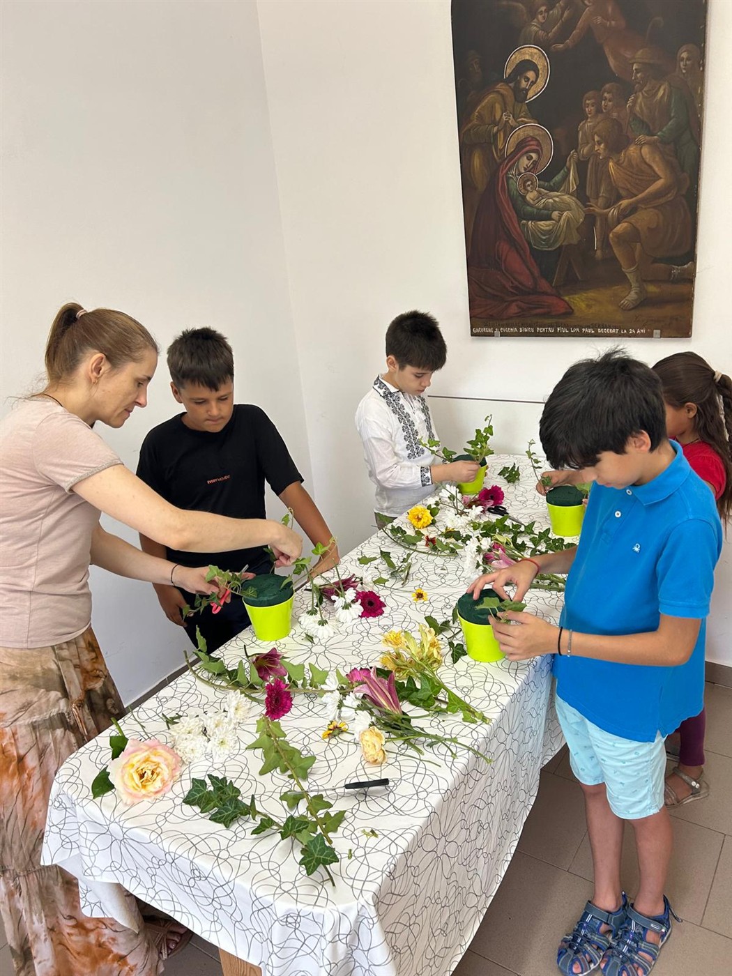 În cadrul activităţilor, copiii au alcătuit buchete și ornamente florale. Astfel, tinerii au primit toate materialele necesare realizării unui buchet sau unui ornament floral, iar sub îndrumarea doamnei preotese, rezultatul a fost unul cu totul special. La finalul activității, fiecare copil a dăruit ornamentul floral mamei sale.