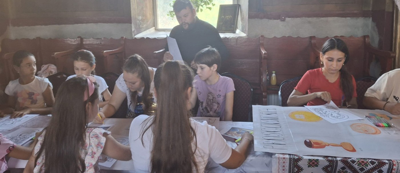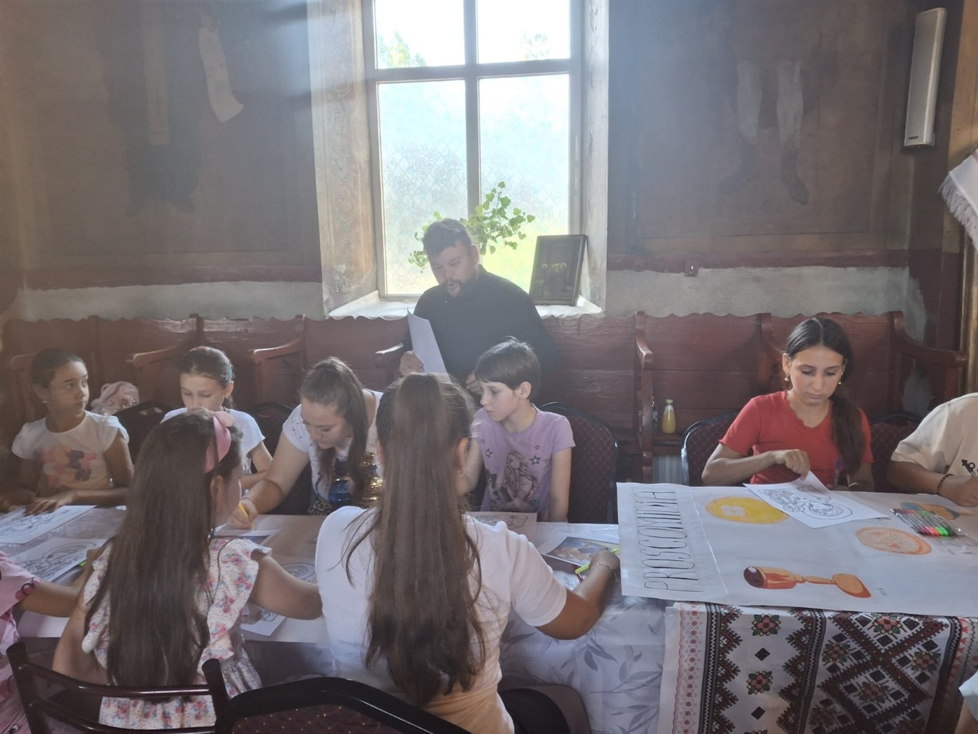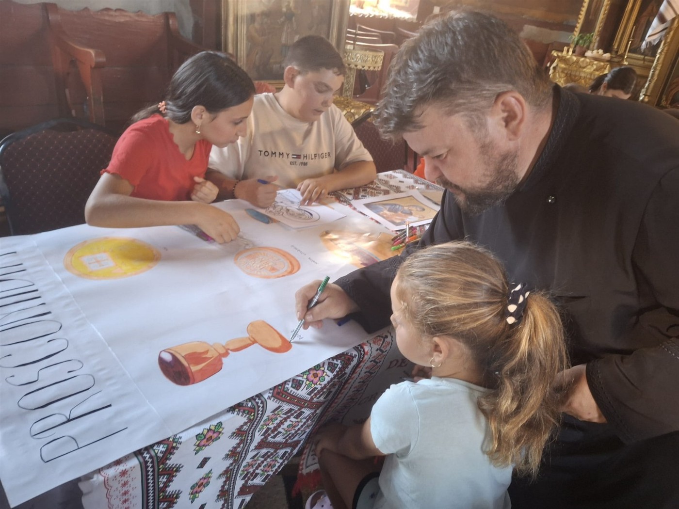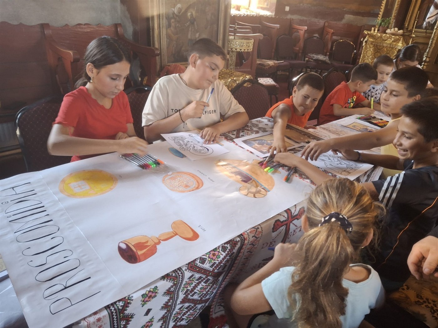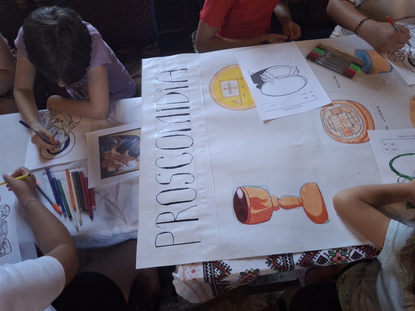 Au urmat activități creative, unde toți participanți au desenat planșe cu obiectele sfinte folosite la proscomidie, dar și icoane cu chipul Maicii Domnului.