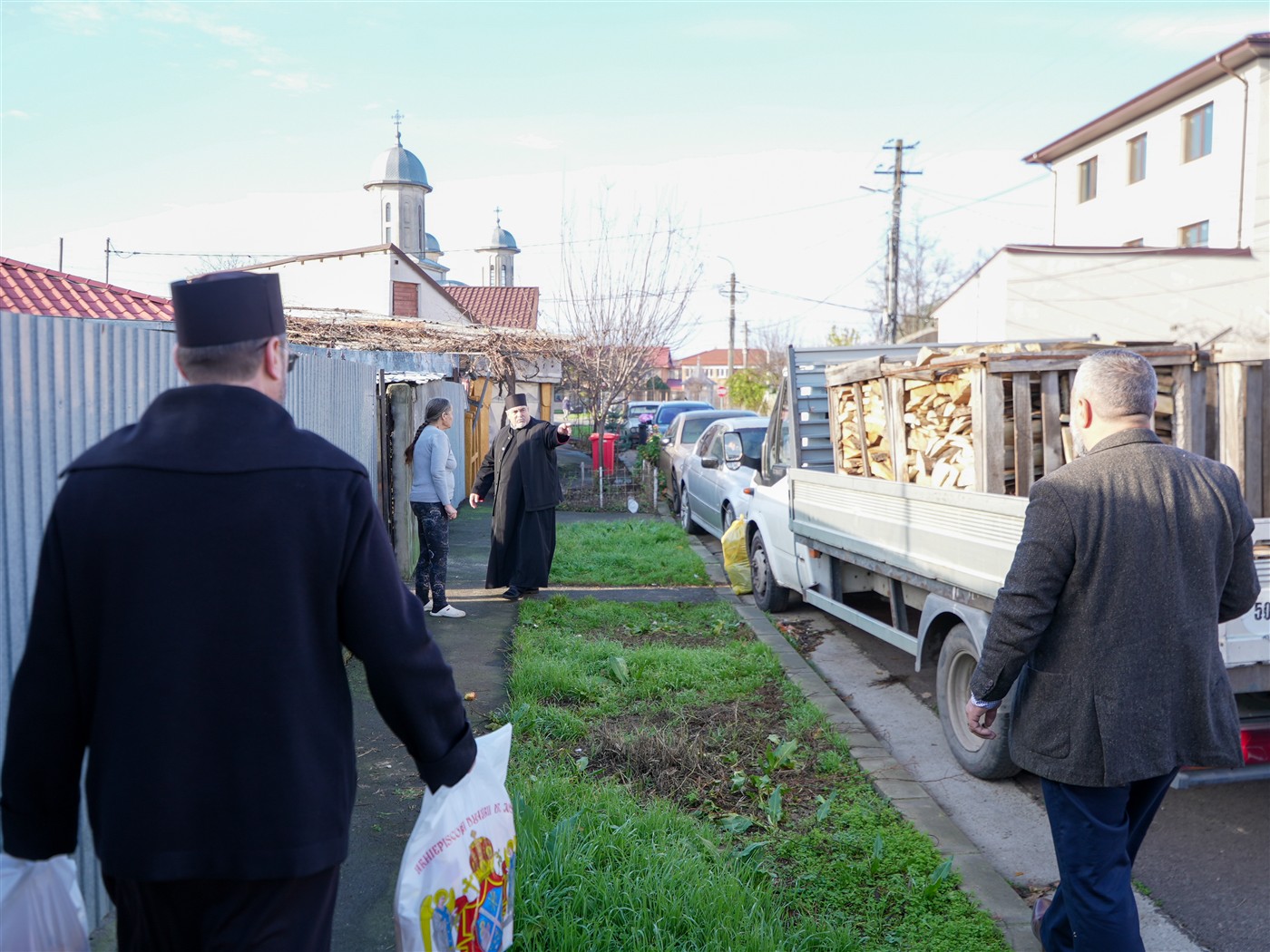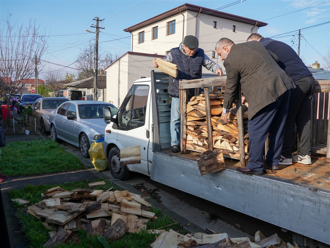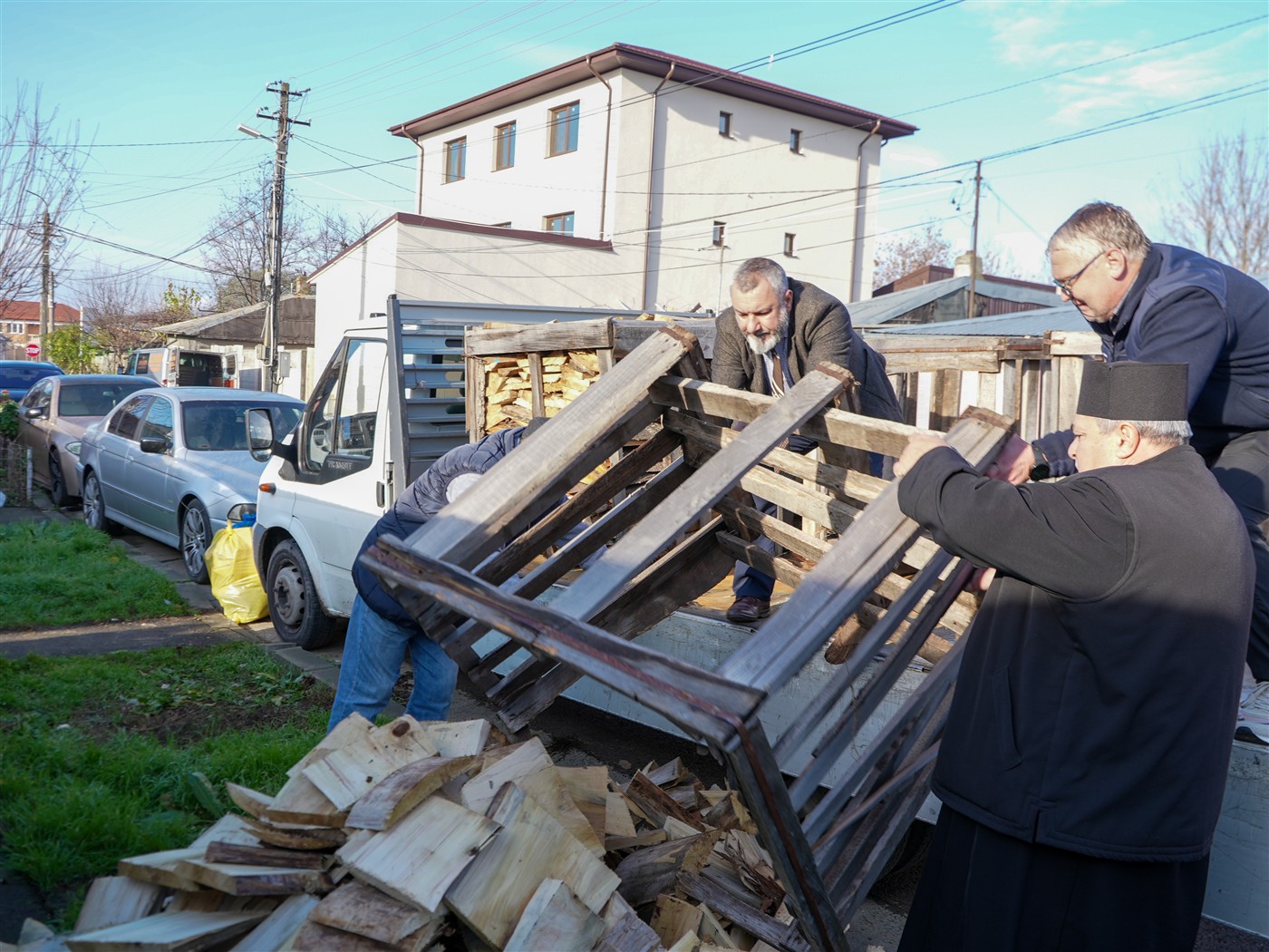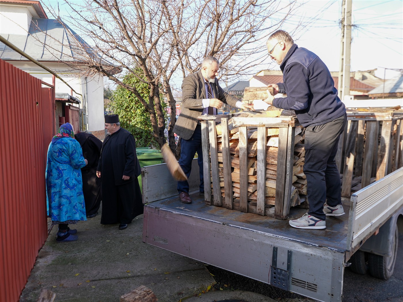 Fapta cea bună a continuat şi astăzi, când 25 de familii au primit din partea parohiei lemne pentru iarnă şi alimente necesare pentru masa de sfintele sărbători.