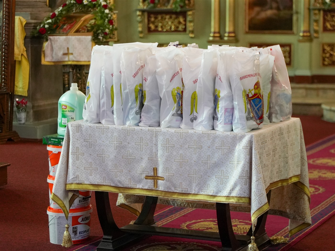 Darurile au fost pregătite la biserica parohială şi apoi transportate la sediul azilului pentru a fi oferite vârstnicilor.