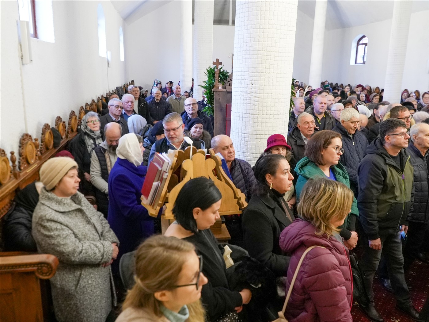 La slujbă au fost prezenţi credincioşi din municipiu, iar răspunsurile liturgice au fost oferite de corul acestui locaş de cult.