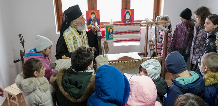 După momentele de rugăciune şi de binevântare a muzeului, Înaltpreasfinţitul Părinte Arhiepiscop Casian le-a fost gazdă primitoare, ghid şi îndrumător seminariştilor, atât în spaţiul muzeal compus din cele patru camere tematice – Peştera din Betleem, Casa bunicii, Zâmbet de copil şi Cămara şi bucătăria copilului, cât şi în celelate zone ale fermei.