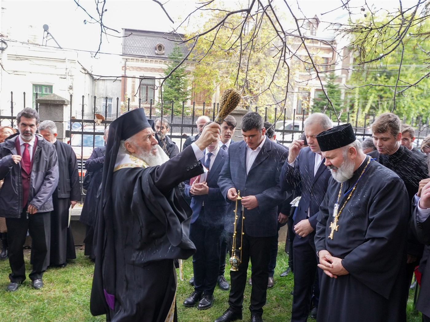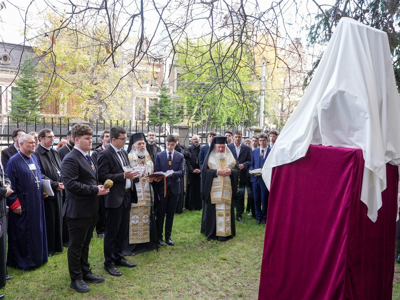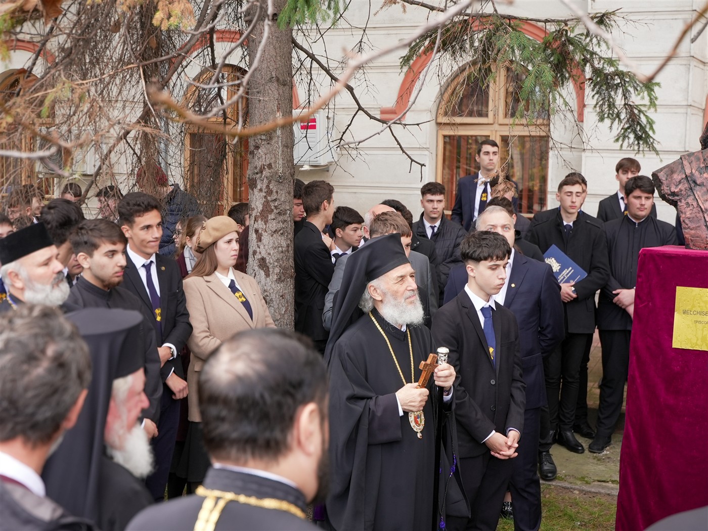 De la Catedrala arhiepiscopală, cei doi ierarhi prezenţi şi ceilaţi participanţi au mers la sediul Facultăţii de Istorie, Filosofie şi Teologie din Galaţi, unde a fost dezvelit şi binecuvântat bustul Episcopului Melchisedec Ştefănescu.