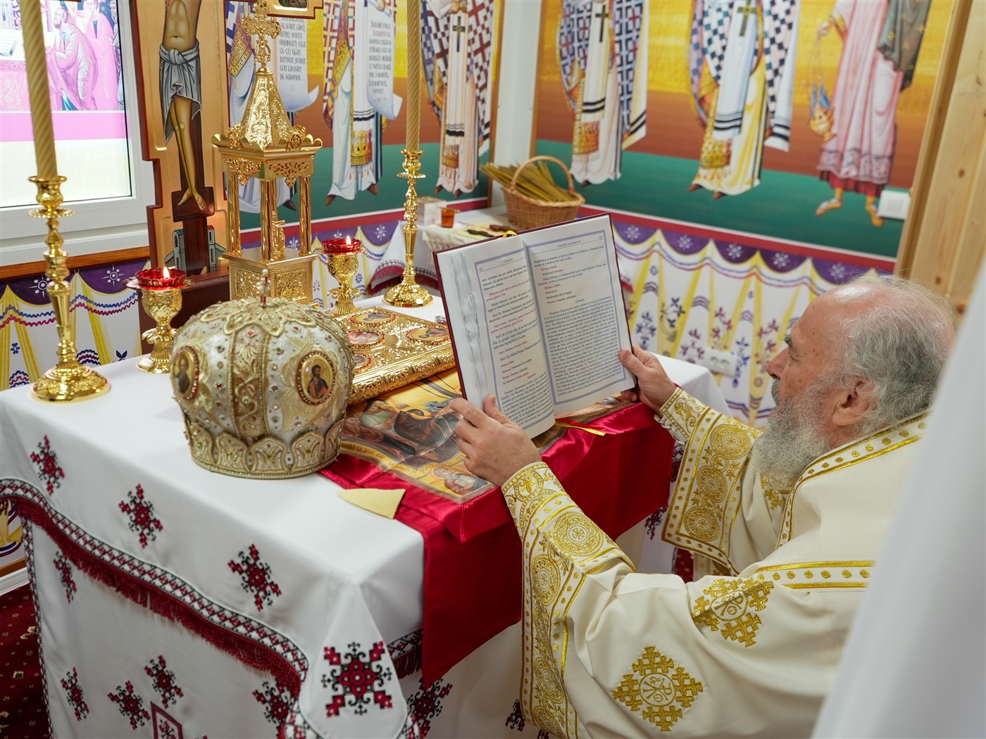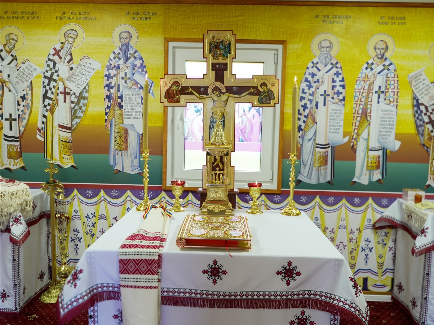Înaltpreasfințitul Părinte Arhiepiscop Casian a oferit noii biserici antimisul sfinţit și a binecuvântat cu aghizamă icoanele şi pereții locaşului de cult.