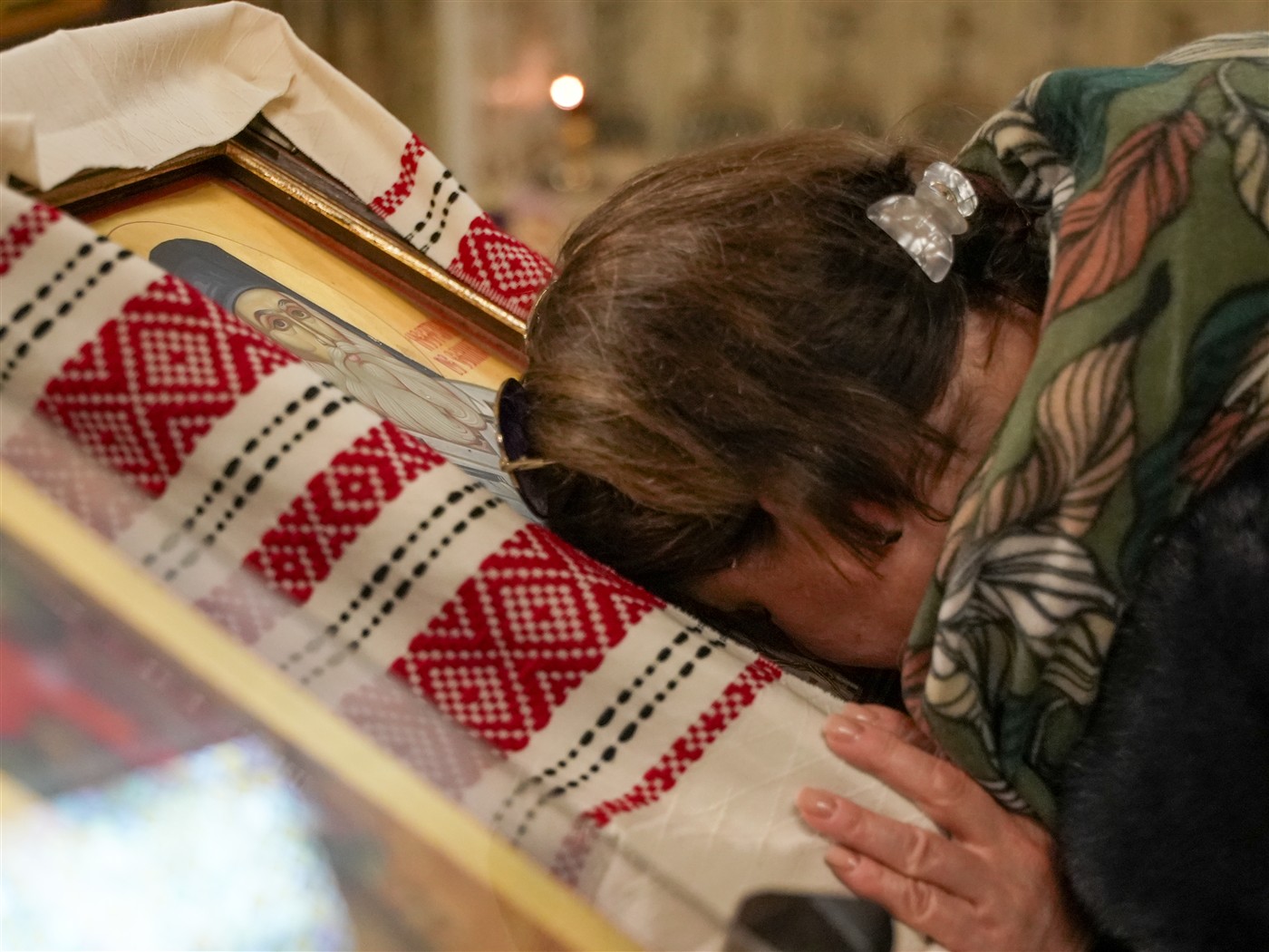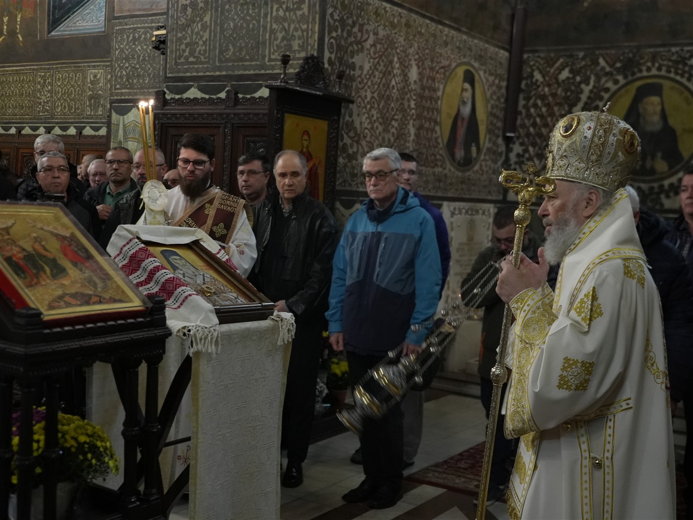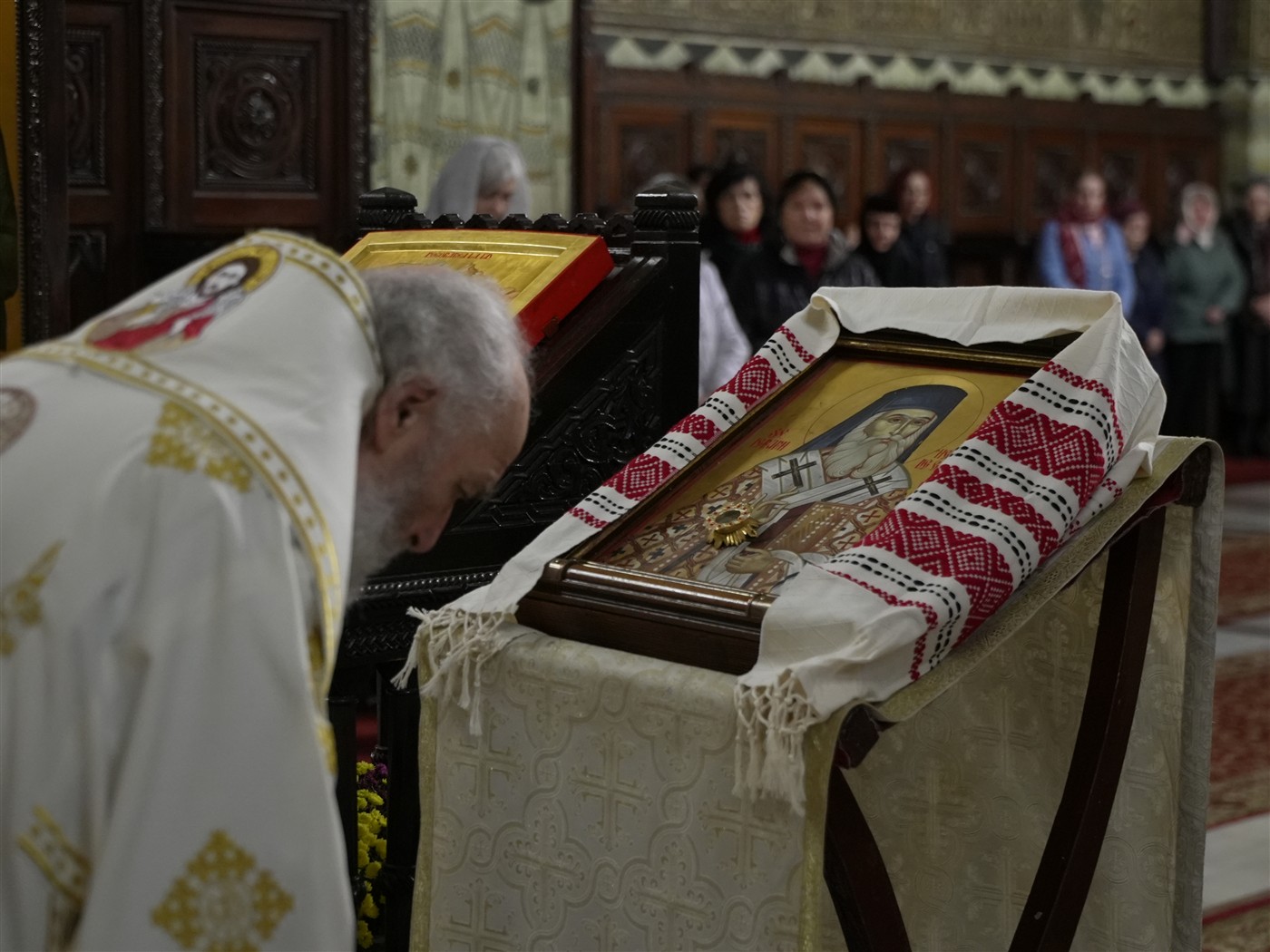 Pe tot parcursul slujbei, toţi cei prezenţi s-au închinat la icoana ce adăposteşte o părticică din moaştele Sfântului Nectarie, adusă spre venerare din patrimonial sacru al Reşedinţei arhiepiscopale.