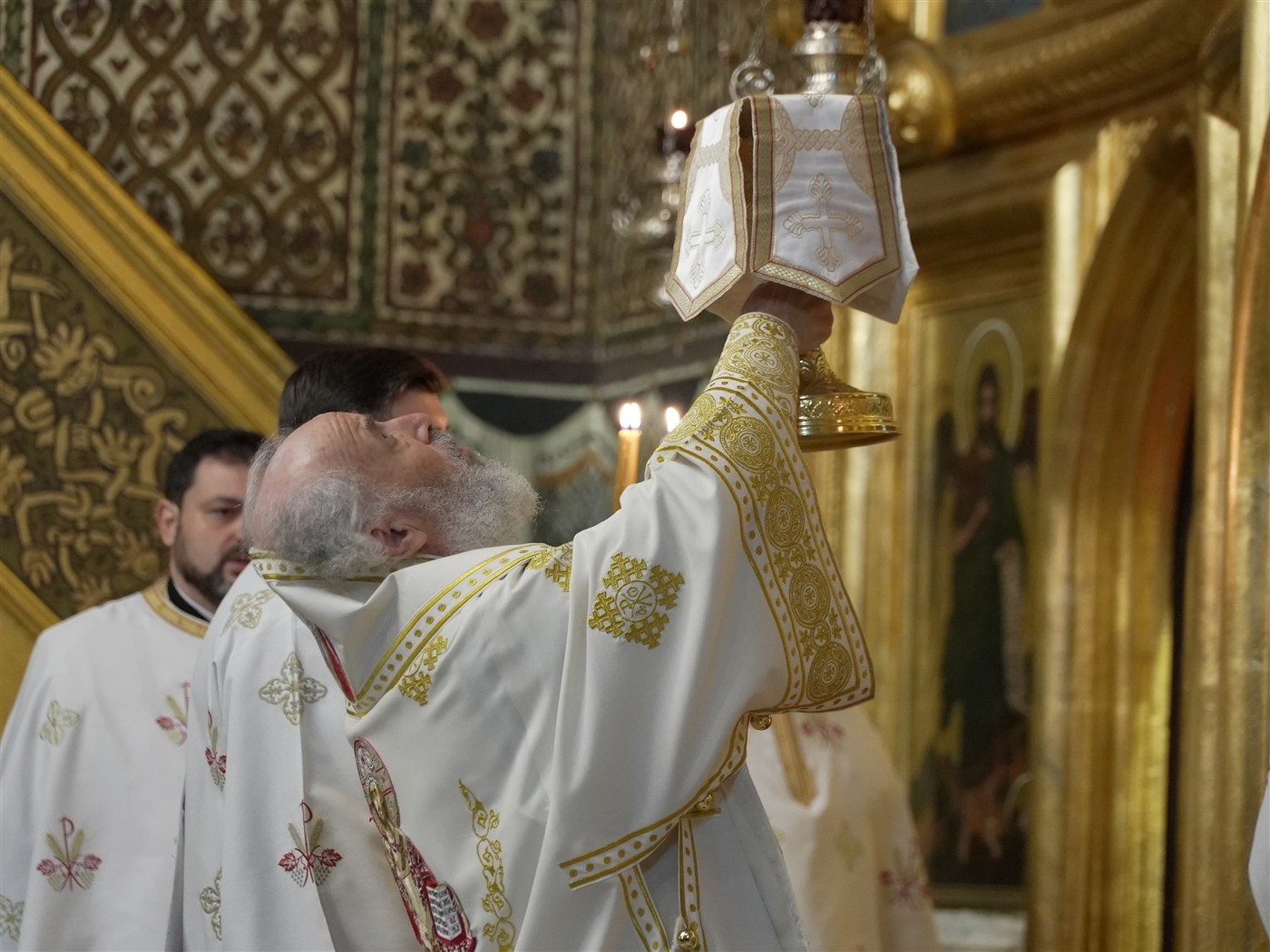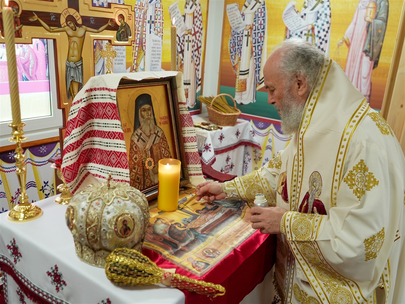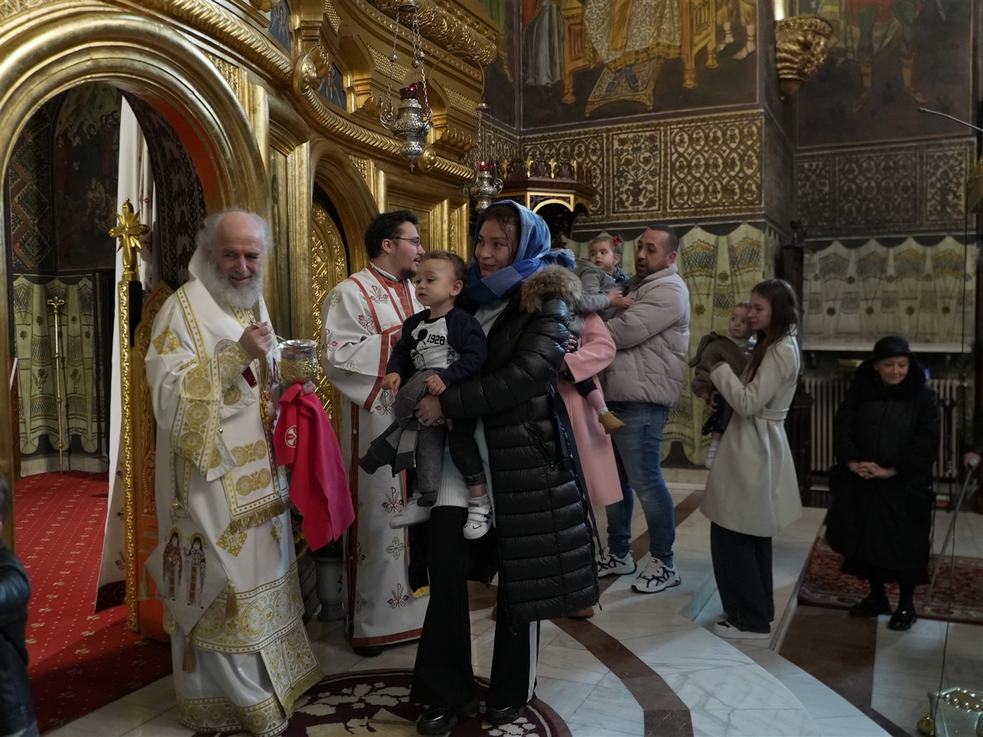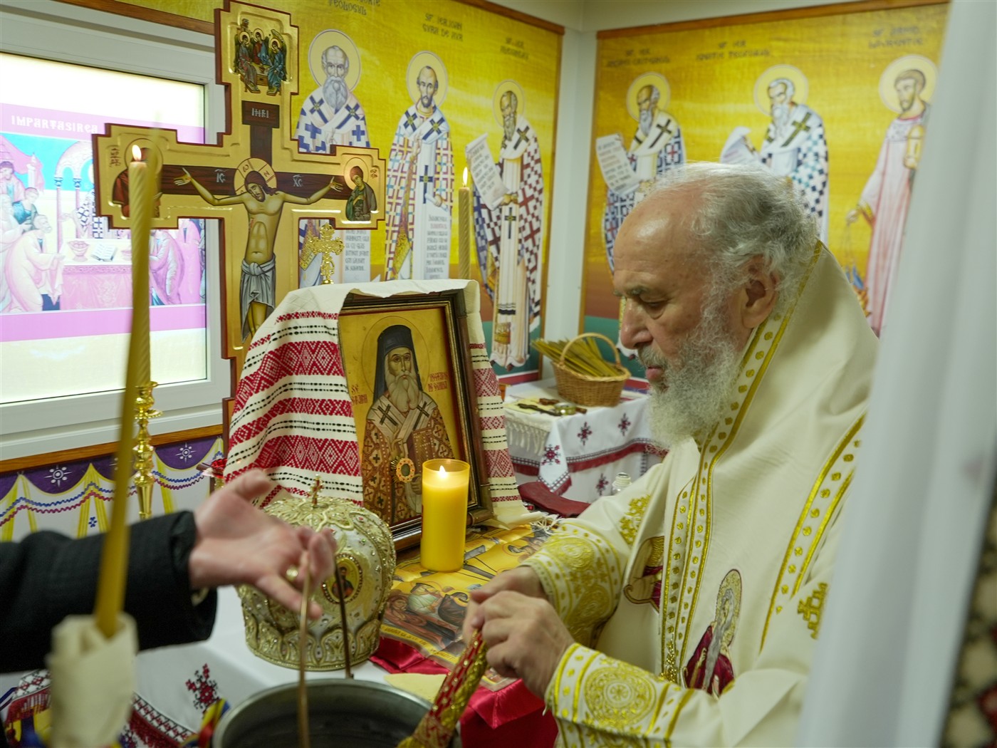 Pe tot parcursul slujbei, toţi cei prezenţi s-au închinat la icoana ce adăposteşte o părticică din moaştele Sfântului Nectarie, adusă spre venerare din patrimonial sacru al Reşedinţei arhiepiscopale.