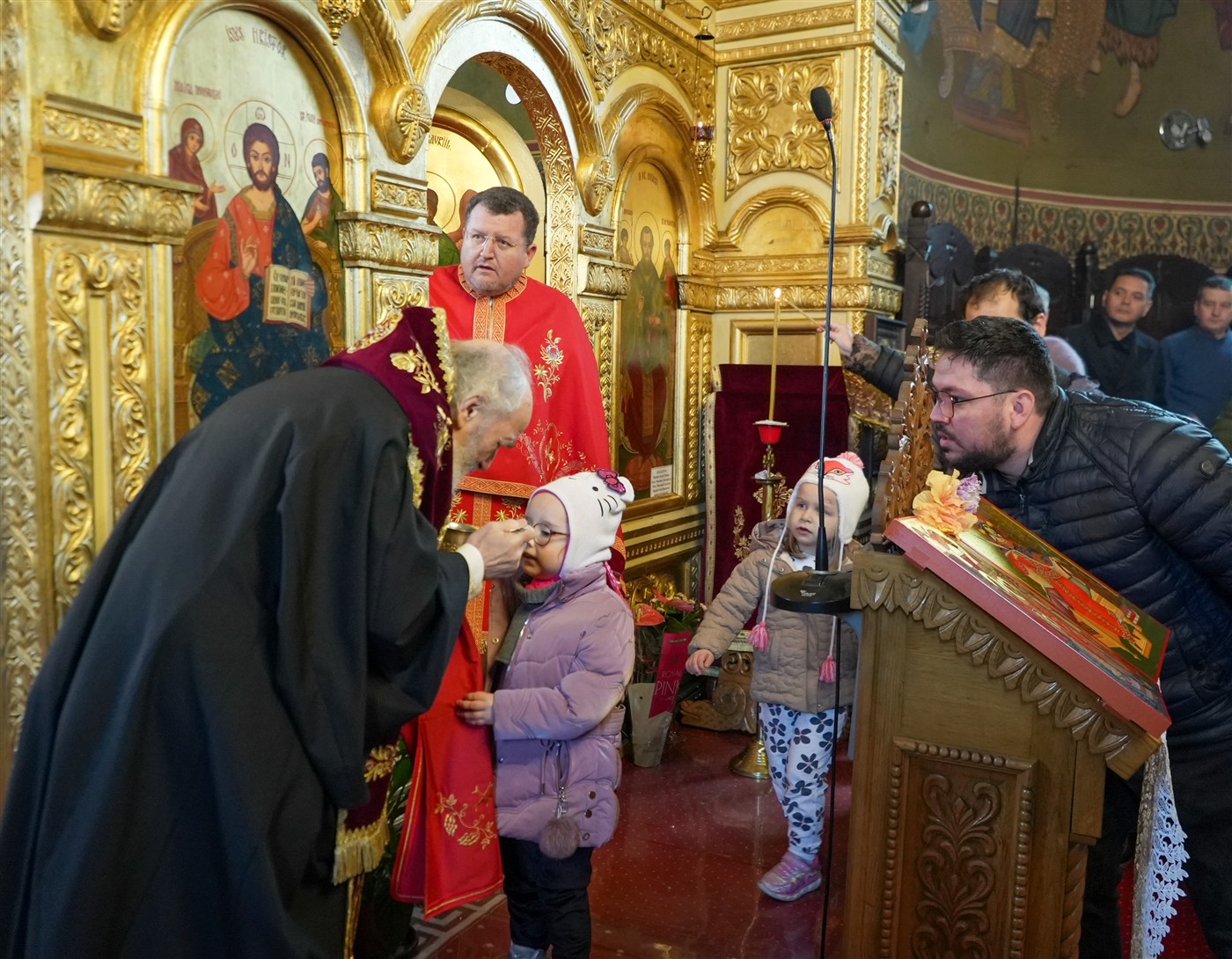 La momentul liturgic cuvenit, o parte dintre copiii şi credincioşii prezenţi au fost împărtăşiţi cu Sfintele Taine.