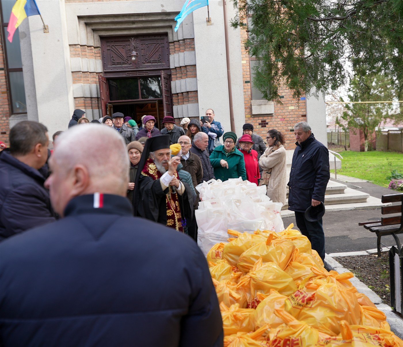 Cu prilejul hramului, 25 de semeni nevoiaşi de la adăpostul de noapte din apropierea bisericii au primit pachete cu alimente în valoare de 2500 lei.