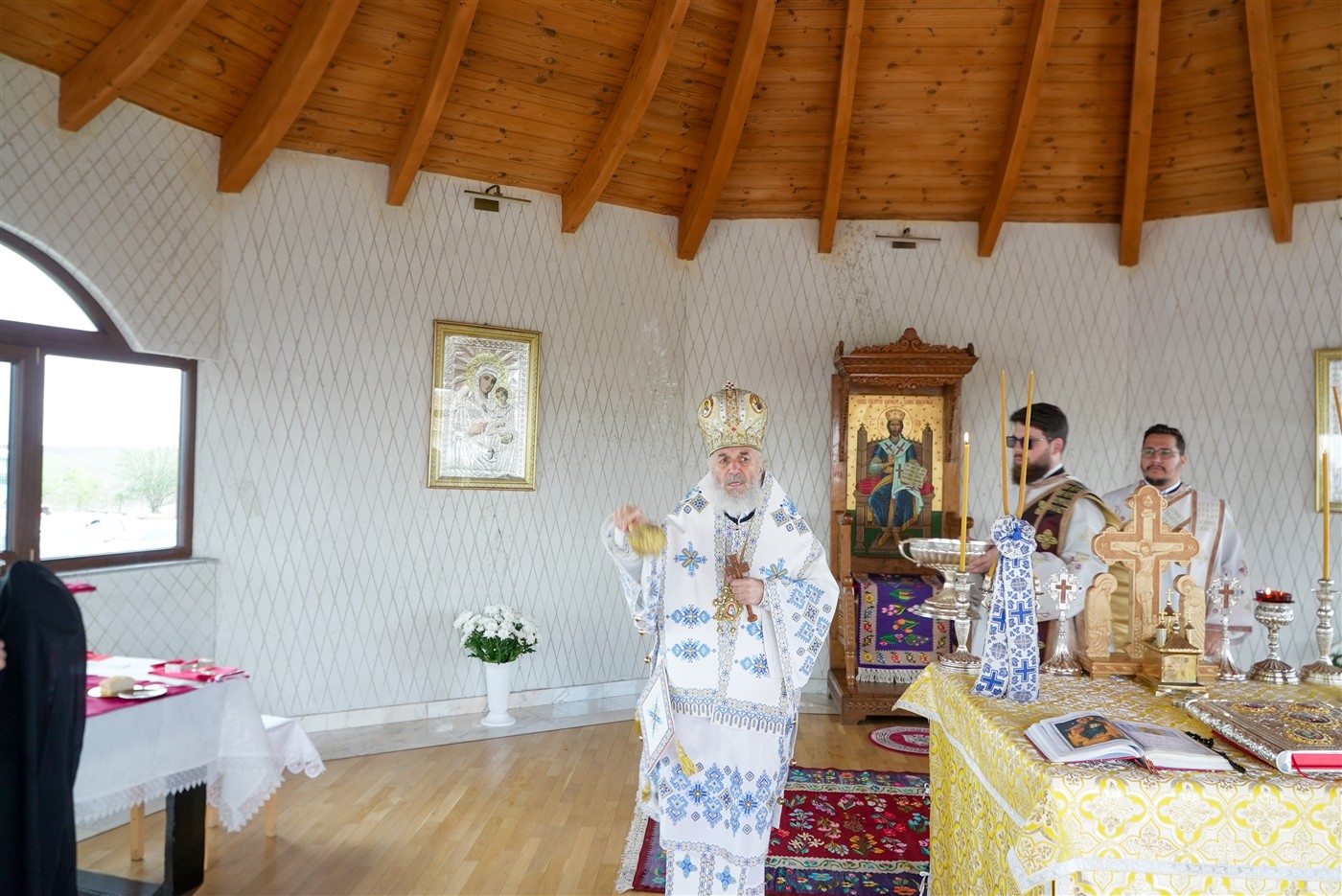 Ierarhul locului a slujit împreună cu un sobor de clerici din administraţia Eparhială şi din protopopiatul Covurlui, în prezenţa multor credincioşi din satele din apropierea noului schit. La slujbă au participat medici de la Spitalul de psihiatrie ,,Elisabeta Doamna” din Galaţi, cadre didactice şi studenţi de la Facultatea de Medicină şi Farmacie şi de la Facultatea de Istorie, Filosofie şi Teologie din Galaţi, precum şi angajaţi din cadrul Pentitenciarului pentru tineri şi minori de la Tichileşti, judeţul Brăila, prezenţi astăzi în acest spaţiu bisericesc pentru implementarea unui proiect ce are ca scop reabilitarea tinerilor afectaţi de adicţii.