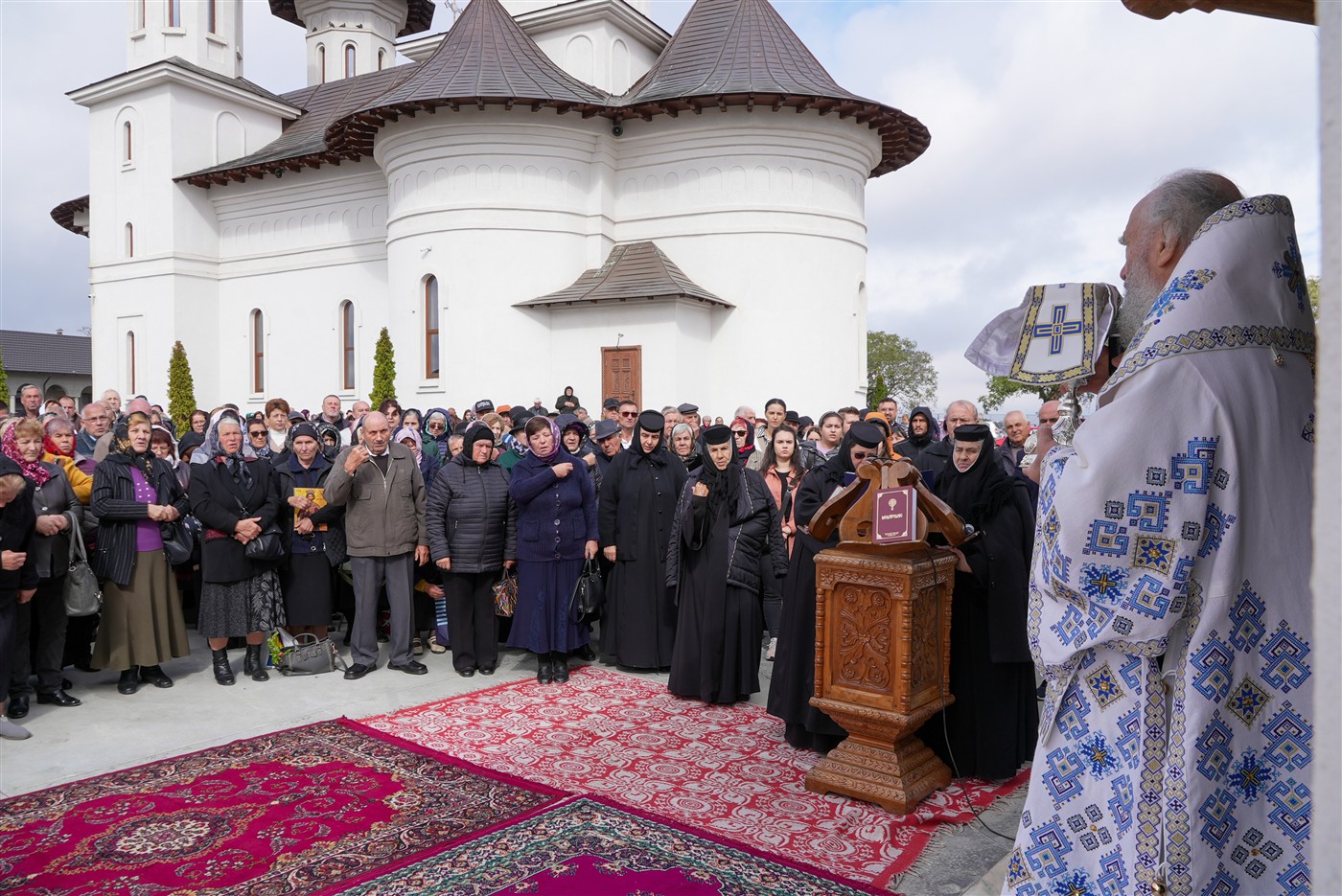 Evenimentul a debutat cu săvârşirea slujbei de binecuvântare a Altarului de vară amenajat în incinta aşezământului monahal şi a continuat cu oficierea Sfintei Liturghii de către Înaltpreasfinţitul Părinte Casian, Arhiepiscopul Dunării de Jos.