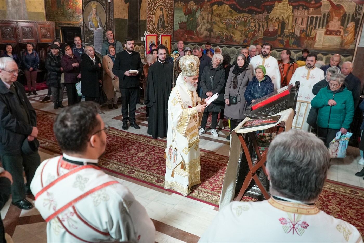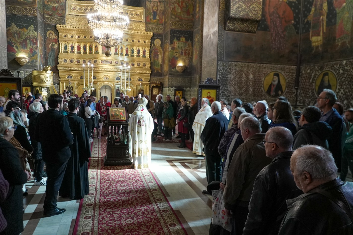 Pe tot parcursul slujbei, credincioşii prezenţi s-au putut închina şi la icoana Sfântului Preot Mărturisitor Dumitru Stăniloae, a cărui proclamare locală a canonizării a avut loc sâmbătă 4 octombrie, la Mănăstirea Cernica.
