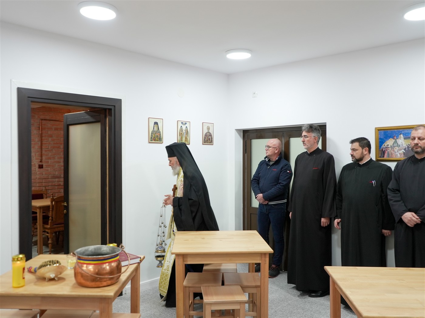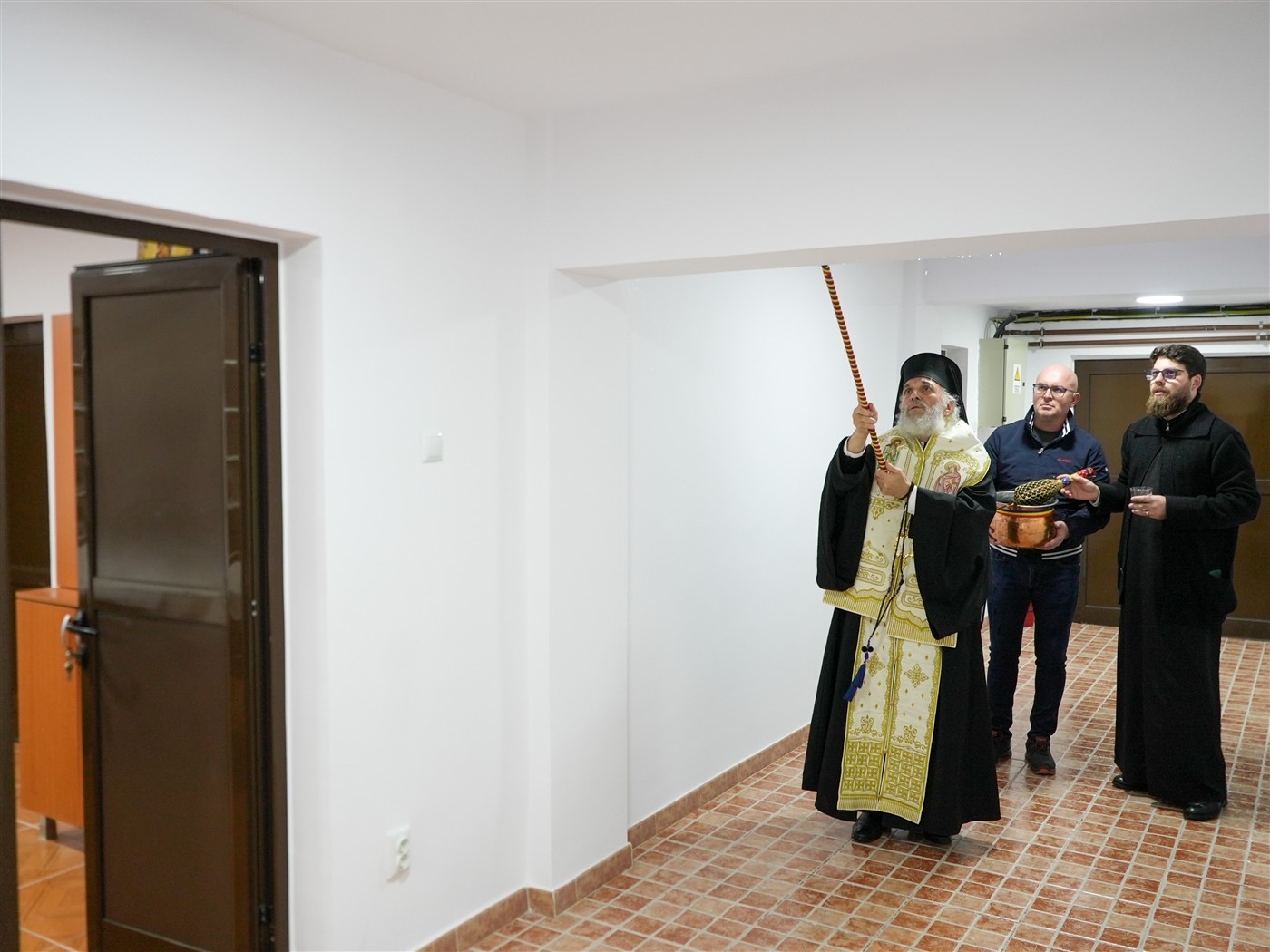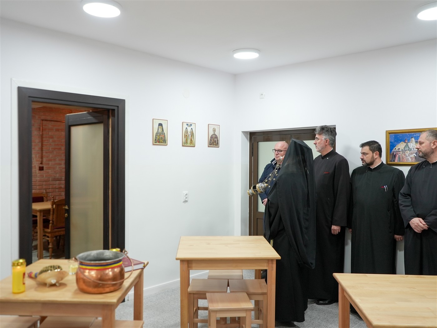 La slujba de binecuvântare au participat membrii Permanenţei Consiliului Eparhial, angajaţii cantinei şi reprezentanţii echipei care au efectuat lucrările de reabilitare,