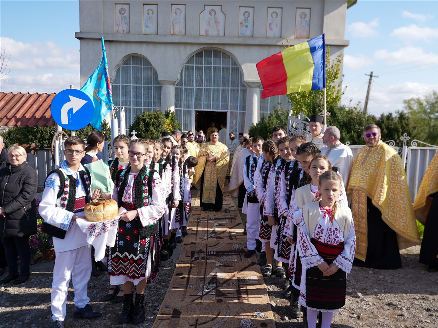 Prima oprire în Cavadineşti a fost la Biserica ”Sfântul M. Mc. Dimitrie”, unde Părintele Arhiepiscop, împreună cu membrii Permanenţei Consiliului eparhial, preoţii din protopopiatul Târgu Bujor, mulţi copii şi tineri şi credincioşi au mulţumit Milostivului Dumnezeu pentru darurile revăsate asupra poporului dreptcredincios prin sfinţii bineplăcuţi Lui.