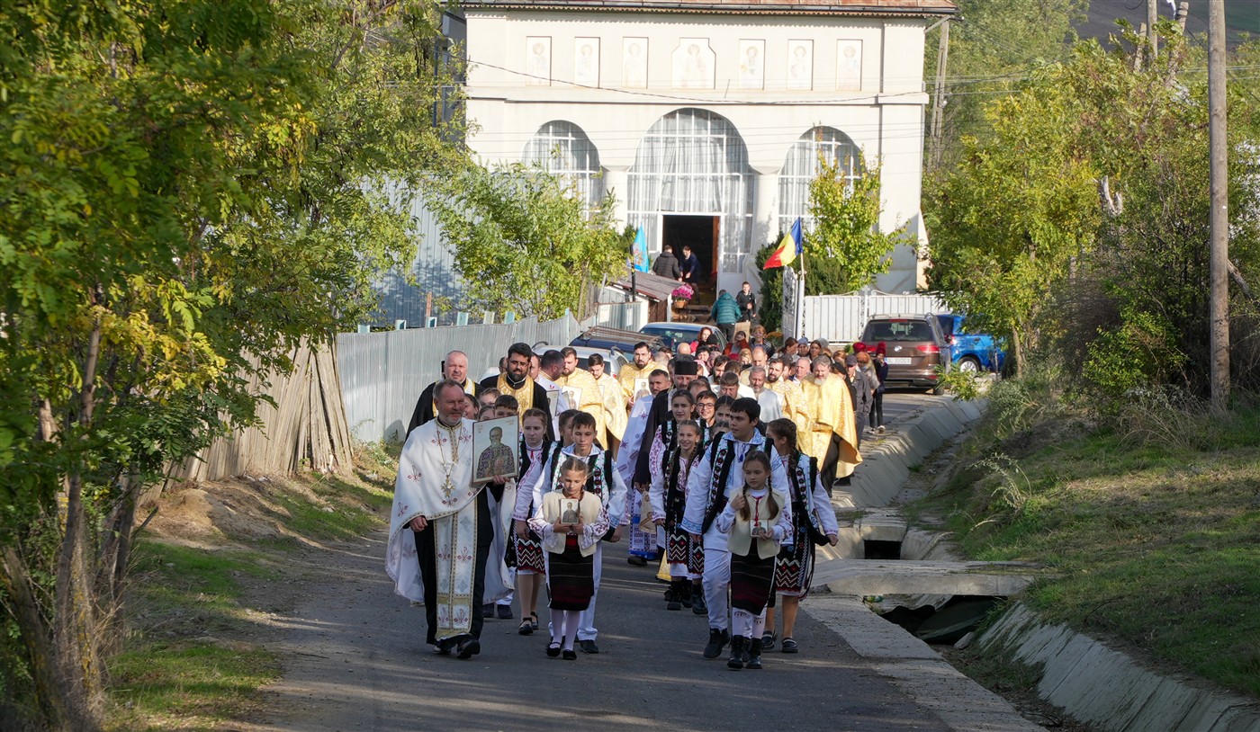 De la această biserică, ierarhul locului împreună cu slujitorii Sfintelor Altare şi mulţimea de tineri şi credincioşi au mers în procesiune către biserica cu hramul ”Adormirea Maicii Domnului” din aceeaşi localitate, aflată în prezent în restaurare, unde, în urmă cu 120 de ani, Sfântul Constantin Sârbu a primit Taina Sfântului Botezului.