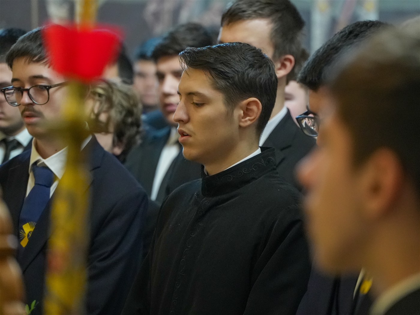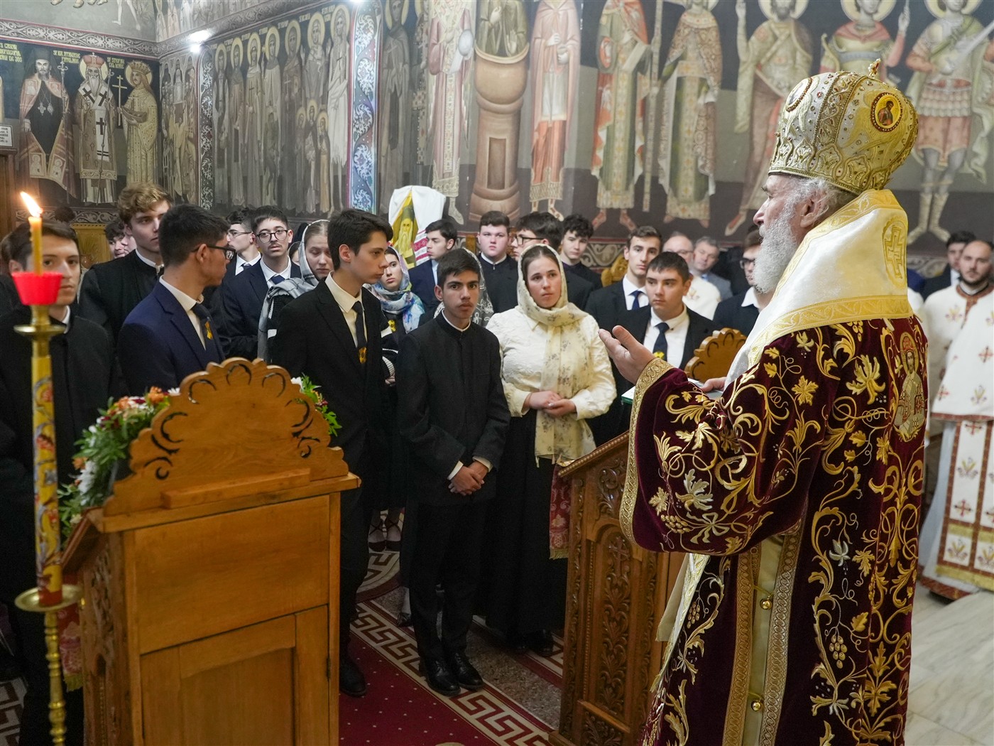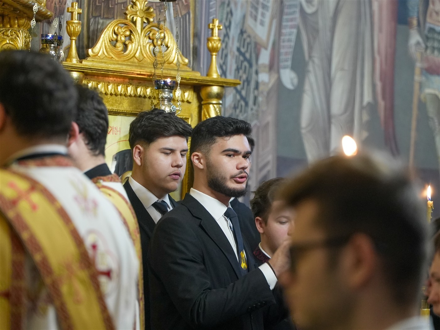 În soborul de slujitori au fost clerici din Administraţia eparhială şi preoţi profesori de la Seminarul gălăţean, în prezenţa rugătoare a tinerilor seminarişti de la clasele primare, gimnaziale şi liceale, mulţi dintre aceştia fiind împărtăşiţi cu Sfintele Taine.